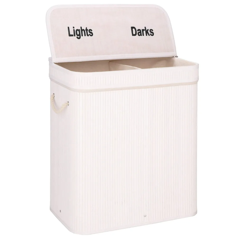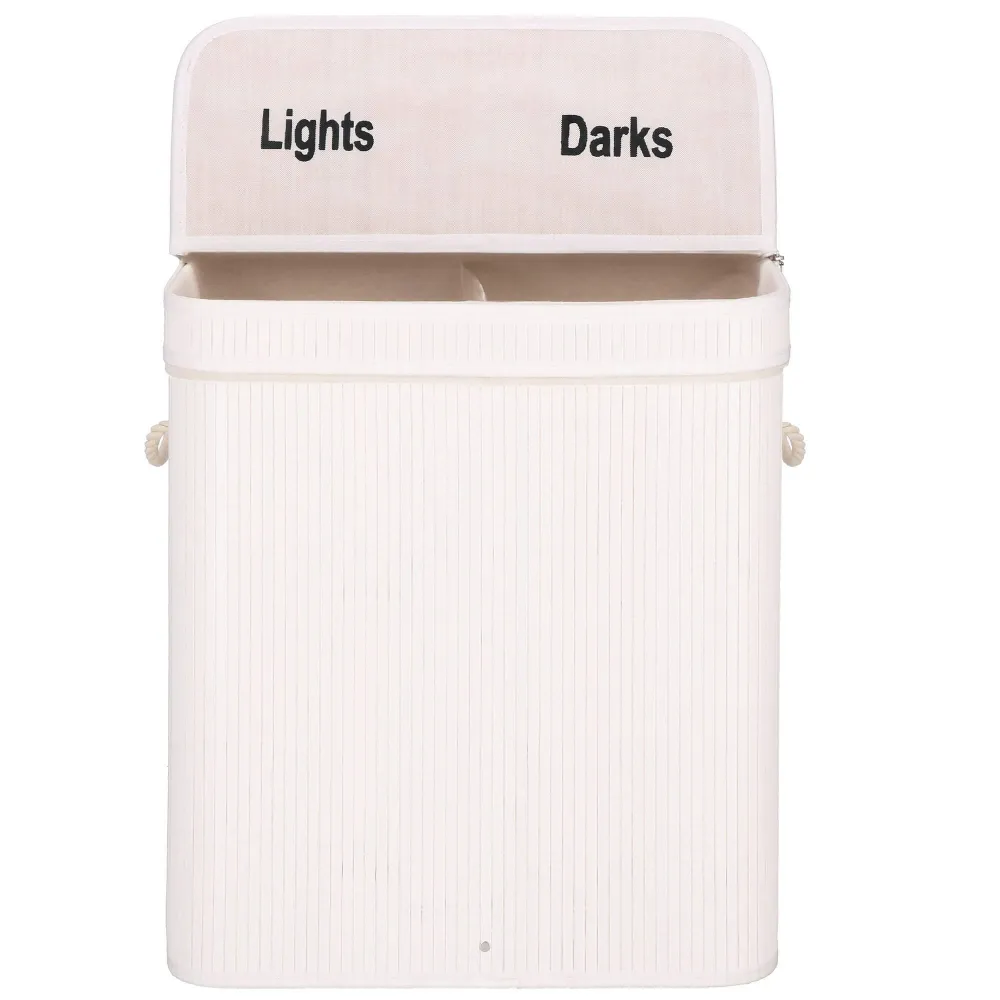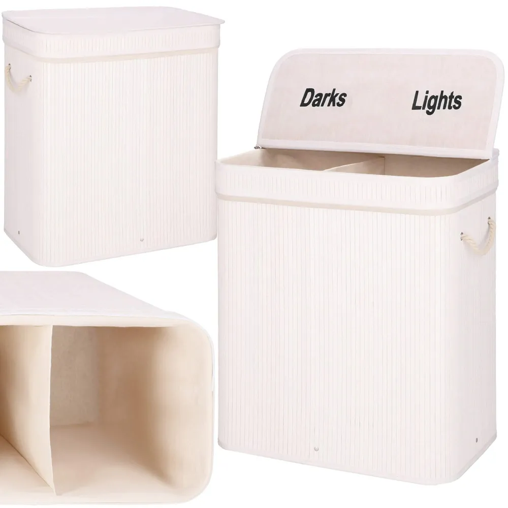 Kôš na bielizeň dvojdielny 100l SPRINGOS LUMORA bambus biely je ideálnym riešením pre každého, kto hľadá praktický a zároveň esteticky príjemný spôsob, ako udržať kúpeľňu či spálňu organizovanú.