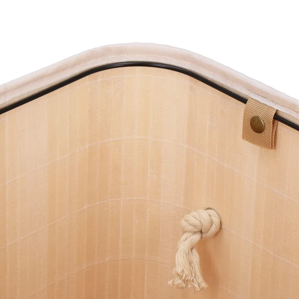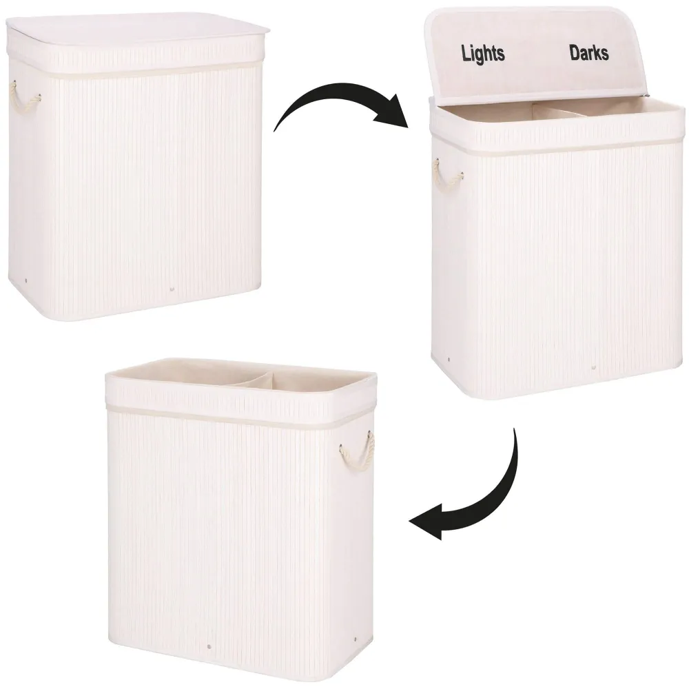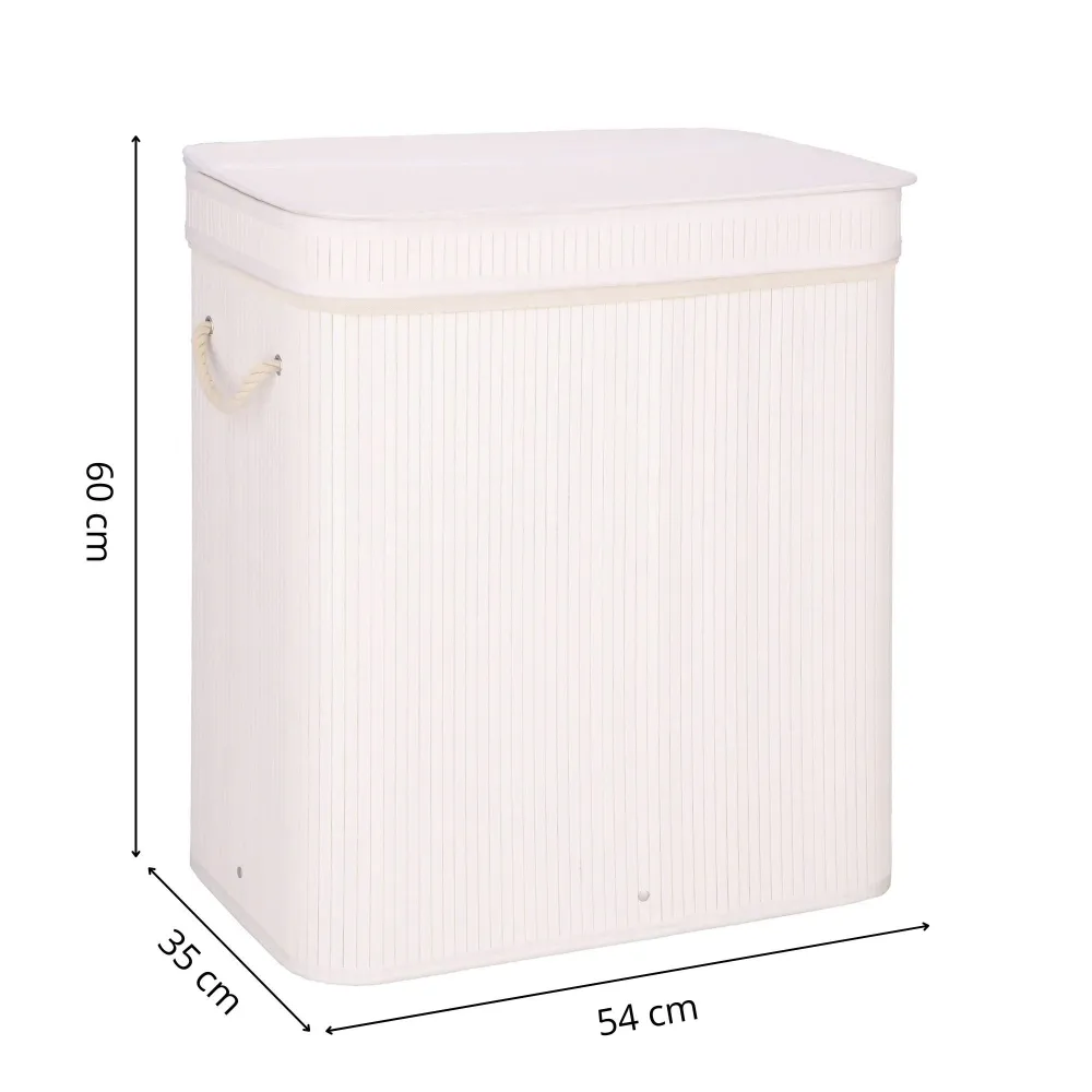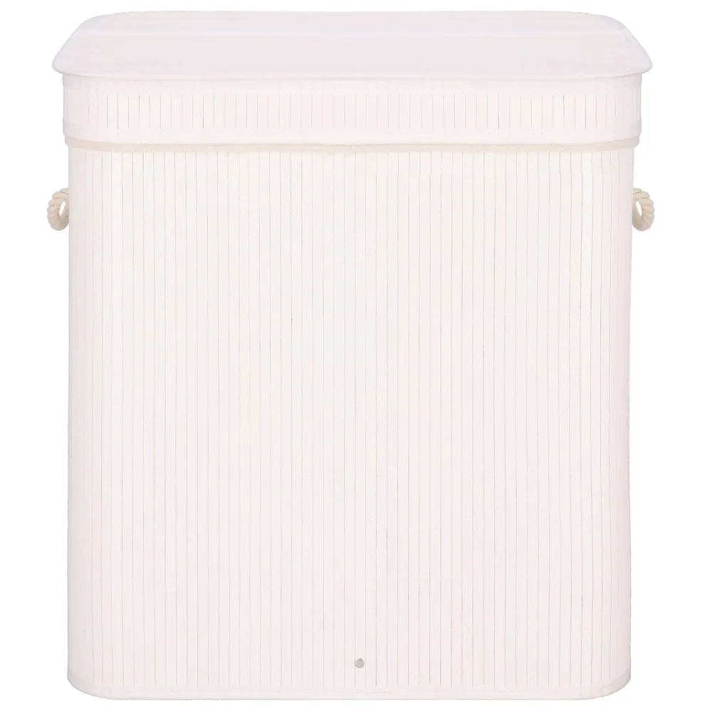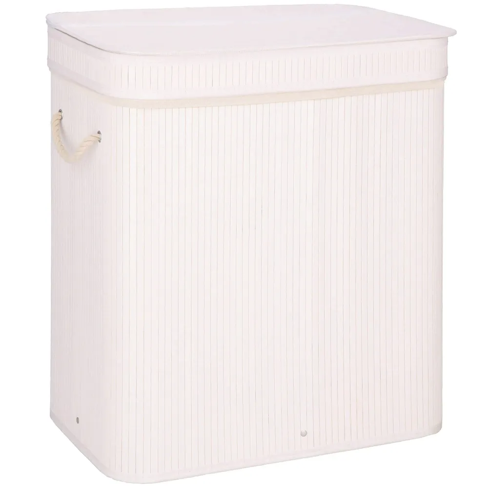 Kôš na triedenie špinavej bielizne s objemom 100 litrov ponúka praktické riešenie pre domácnosť. Kôš s dvoma oddielmi uľahčuje triedenie svetlej a tmavej bielizne. Vyberateľná vnútorná taška zo zmesi polyesteru a bavlny sa ľahko perie. Moderný dizajn, bambusový materiál šetrný k životnému prostrediu a lanové madlá z neho robia ľahký, praktický a funkčný doplnok každej kúpeľne.