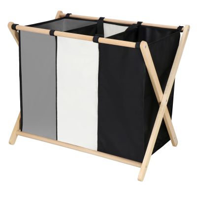 Praktický a štýlový práčovný kôš s tromi oddielmi uľahčuje triedenie špinavej bielizne vďaka farebnému rozlíšeniu jednotlivých priehradok. Jeho skladacia drevená konštrukcia šetrí miesto, keď ho nepoužívate, a textilné priehradky je možné ľahko vyprať. Kôš na špinavú bielizeň je vybavený praktickými pútkami pre pohodlné prenášanie. S celkovým objemom 105 litrov a rozmermi 67 x 41,5 x 57 cm ponúka dostatok priestoru na každodenné použitie. Ideálny pomocník do domácnosti, ktorý kombinuje funkčnosť a moderný design.