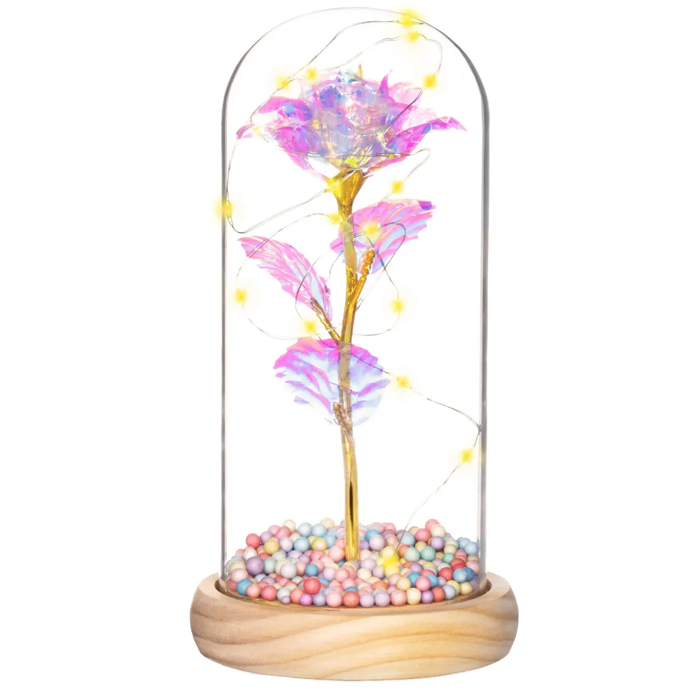 Bezúdržbový elegantný kvet v skle v darčekovom balení . Detailné spracovanie, realistický vzhľad. LED svetelné podsvietenie. Sklenené ochranné púzdro, dlhá životnosť. Vhodné ako darček na každú príležitosť alebo ako dekorácia či lampička.