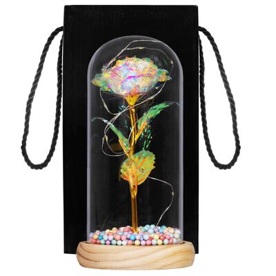 Bezúdržbový elegantný kvet v skle v darčekovom balení. Detailné spracovanie, realistický vzhľad. LED svetelné podsvietenie. Sklenené ochranné púzdro, dlhá životnosť. Vhodné ako darček na každú príležitosť alebo ako dekorácia či lampička.