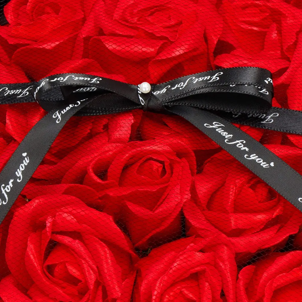 Mydlové kvety SPRINGOS FLORHEART červené predstavujú dokonalú kombináciu elegancie, vône a trvanlivosti. Táto mydlová kytica očarí každého svojim luxusným vzhľadom a precíznym spracovaním. Krásne mydlové ruže sú starostlivo usporiadané, zabalené do čierneho papiera a tylu a doplnené červenou stuhou , ktorá dodáva celému aranžmánu nádych romantiky. Vďaka svojmu prepracovanému dizajnu sa kytica stáva štýlovým darčekom, ktorý poteší pri zásnubách, narodeninách, Dni matiek, výročí aj iných slávnostných chvíľach .
