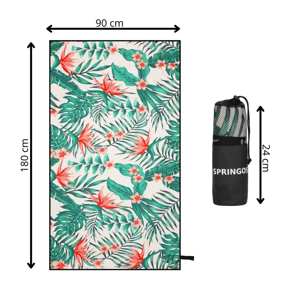 Rýchloschnúci uterák 180x90 cm SPRINGOS MENORCA s motívom tropických kvetov je ideálnym spoločníkom na všetky vaše cesty k vode, športové aktivity aj každodenné použitie. Vďaka rozmerom 180x90 cm ponúka dostatok priestoru pre pohodlné osušenie a pritom si zachováva kompaktnú veľkosť po zložení.