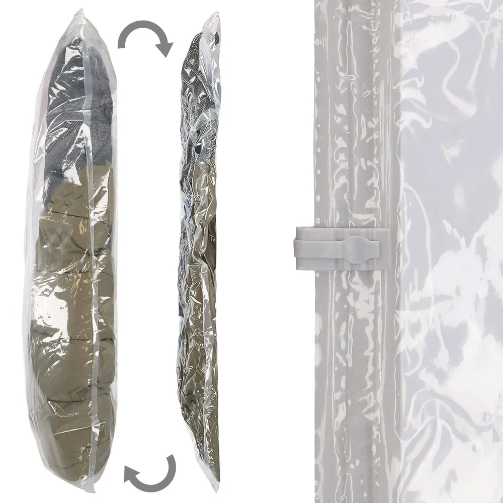 Doma sa počíta každý ušetrený centimeter miesta , rovnako ako na cestách. Vákuové vrecká sú geniálnym riešením, vďaka ktorému môžete odsávaním vzduchu ušetriť 75% miesta . Ušetríte miesto a udržíte zabalený textil čerstvý . Vákuové balenie umožňuje pôsobivo znížiť množstvo priestoru potrebného na skladovanie, čo nie je bez významu, najmä v prípade veľkých predmetov, ako sú vankúše, prikrývky, kabáty, bundy, plyšové zvieratká, uteráky, a pod.