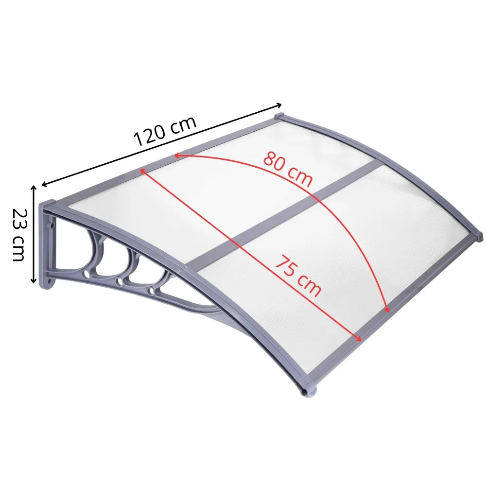 Strieška nad vchodové dvere poskytuje spoľahlivú ochranu proti dažďu aj slnku. Prístrešok je vyrobený z komôrkového polykarbonátu odolného voči UV žiareniu, ktorý zaisťuje dlhú životnosť a stály vzhľad. Priehľadná farba elegantne doplní vstupný priestor. Dverná strieška je upevnená odolnou plastovou konštrukciou s pevnými lištami a držiakmi. Súčasťou balenia je všetok spojovací materiál pre jednoduchú montáž. Rozmery 120x75 cm.