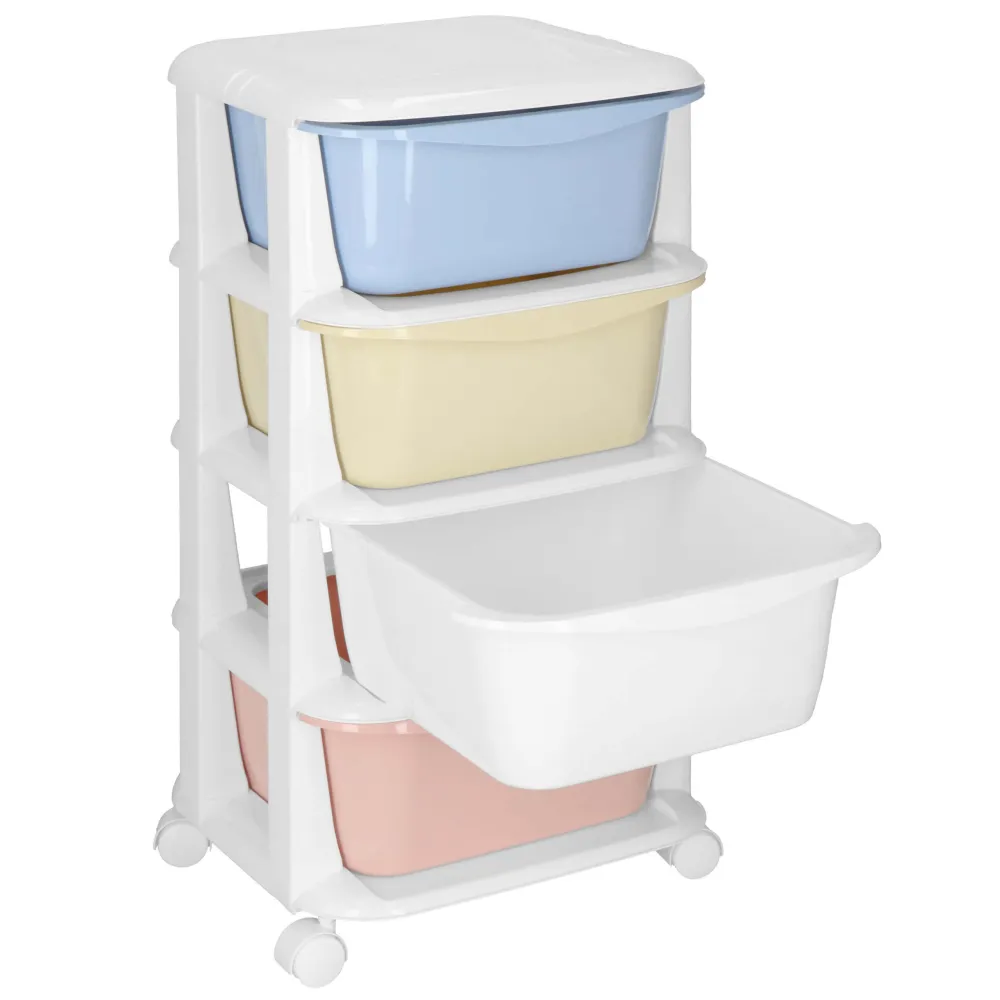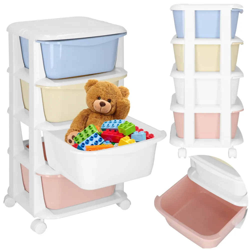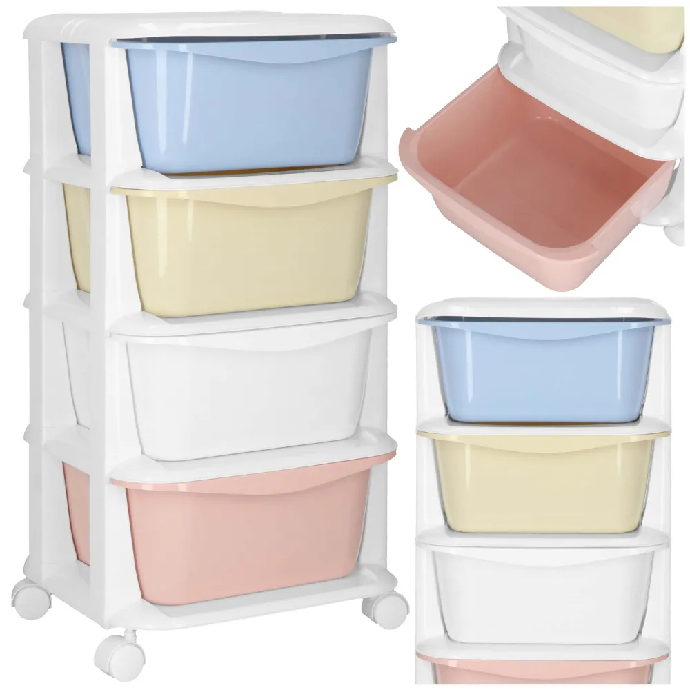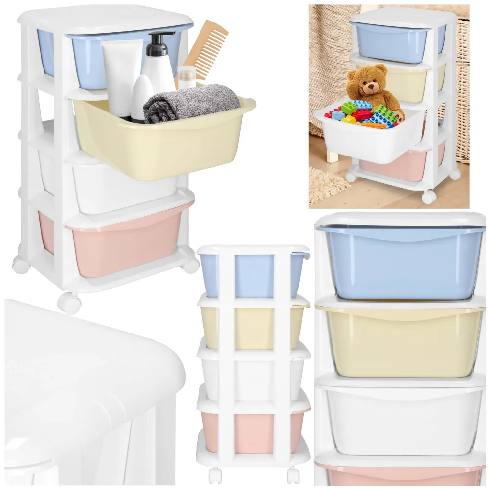 Základné údaje Značka: Springos®. Materiál: plast. Farba rámu: biela. Farby zásuviek: červená, biela, ružová (pastelová). Farba kolies: biela....