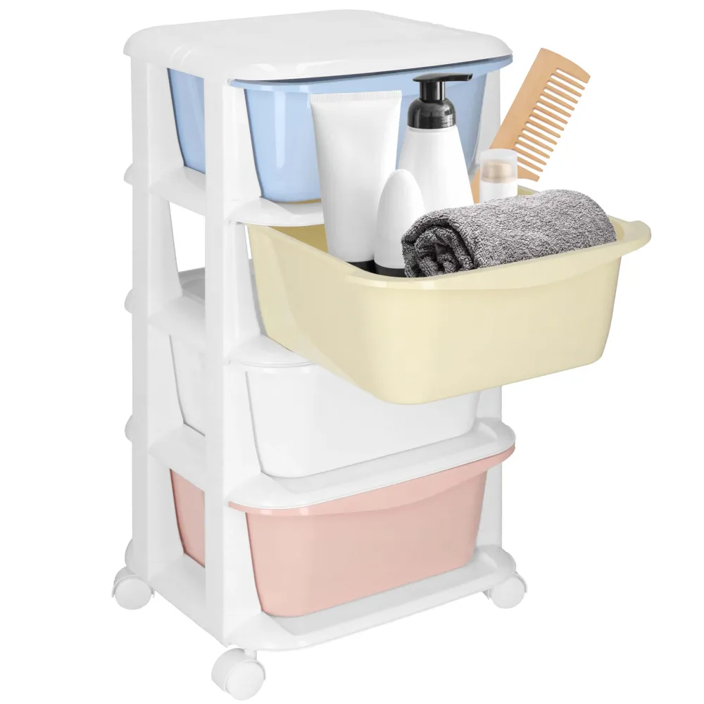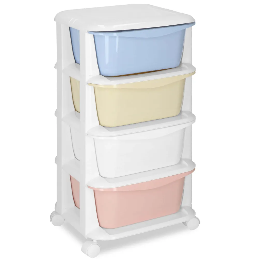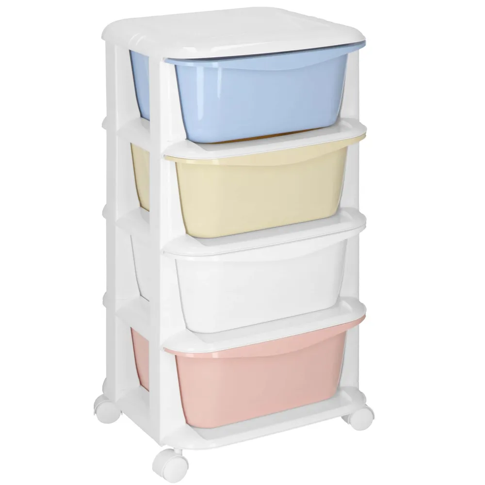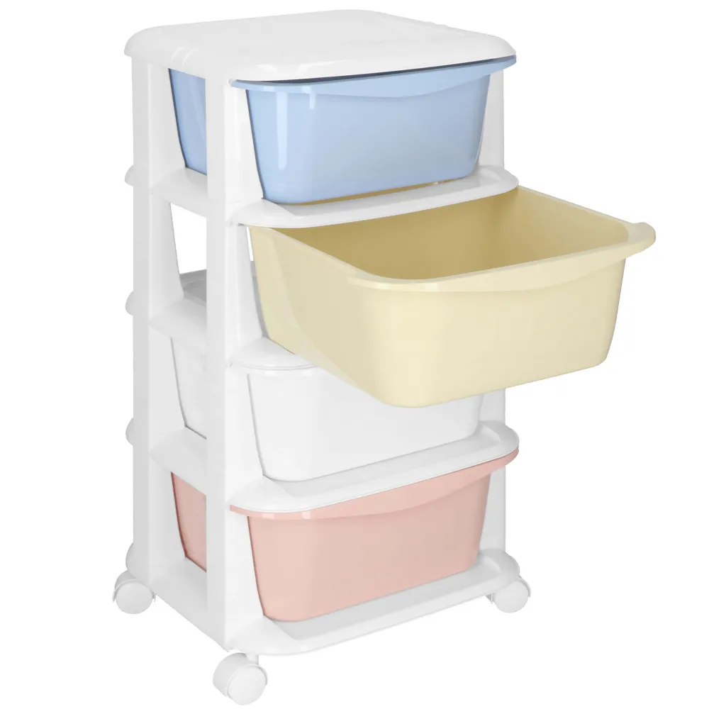Základné údaje Značka: Springos®. Materiál: plast. Farba rámu: biela. Farby zásuviek: červená, biela, ružová (pastelová). Farba kolies: biela....