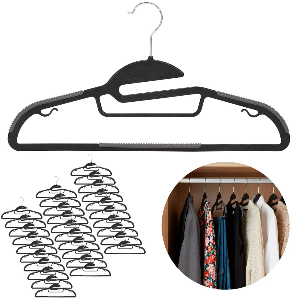 Základné údaje: Značka: Springos®. Materiál: PE. Farba: čierna, šedá. Počet dielikov v sade: 30. Kovový hák. 360° hák. Maximálne zaťaženie ramienka: 5 kg. Zjednodušený tvar. Protišmykové povrchy na ramenách a spodnej priečke. Dva malé háčiky vo vnútri ramienka. Rozmery: Celková šírka: 41 cm. Celková výška: 21,5 cm. Výška háčika: 7 cm. Šírka háčika: 5 cm. Hrúbka profilu: 1,2 cm. Šírka profilu: 0,3 - 1,5 cm. Šírka vnútorného otvoru: 14 cm. Výška vnútorného otvoru: 1,5 - 2,5 cm. Dĺžka vrúbkovaných protišmykových povrchov: 12/15 cm. Hrúbka háčika: 2,8 mm.