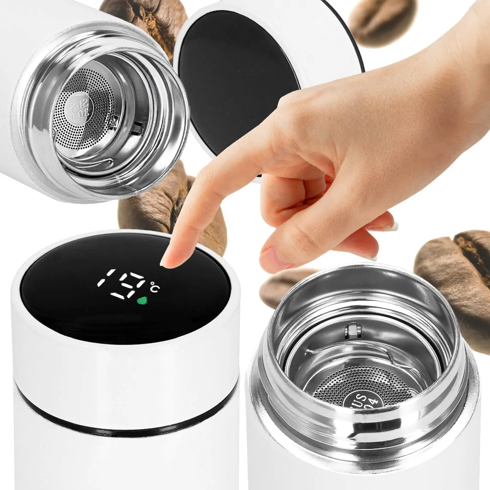 Praktická termoska s objemom 500 ml je ideálna na každodenné používanie doma, v práci aj na cestách. Udrží horúce aj studené nápoje až 12 hodín a vďaka integrovanému digitálnemu displeju na viečku umožní rýchlu kontrolu aktuálnej teploty jednoduchým dotykom. Tesné prevedenie zabraňuje pretekaniu a vnútorné sitko uľahčuje prípravu čaju či bylinkových nápojov. Elegantný vzhľad dopĺňa vysoký komfort používania.