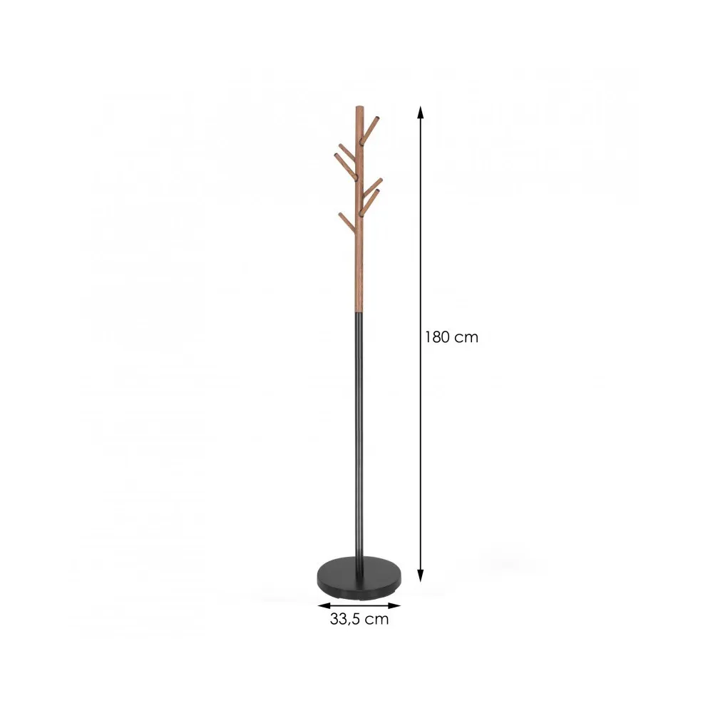 Svoj priestor si najlepšie usporiadate so stojanovým vešiakom SPRINGOS SIXTA. Je vysoký 180 cm, v odtieňoch čiernej farby a imitácii prírodného dreva. Bude dobre fungovať v hale, kancelárii alebo predsieni. Vybavený je guľatou základňou, ktorá je veľmi stabilná. Zaoblené skosené háčiky, elegantná povrchová úprava.