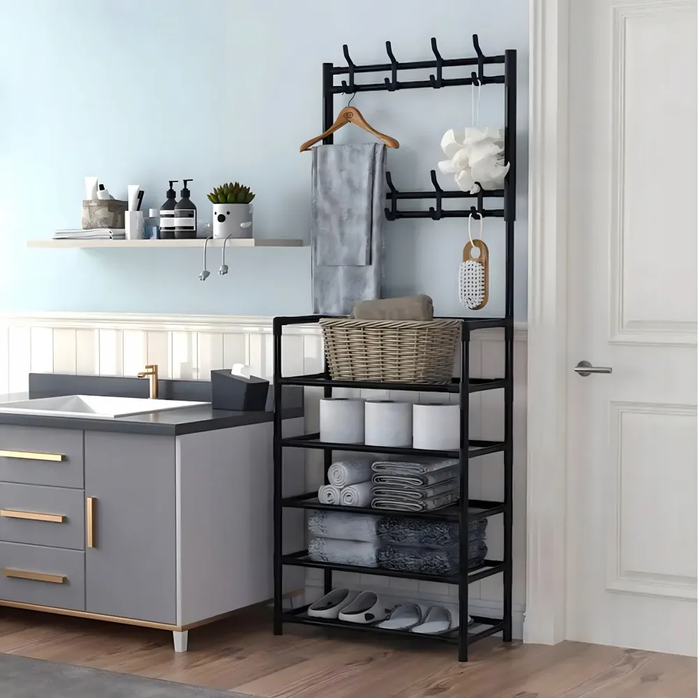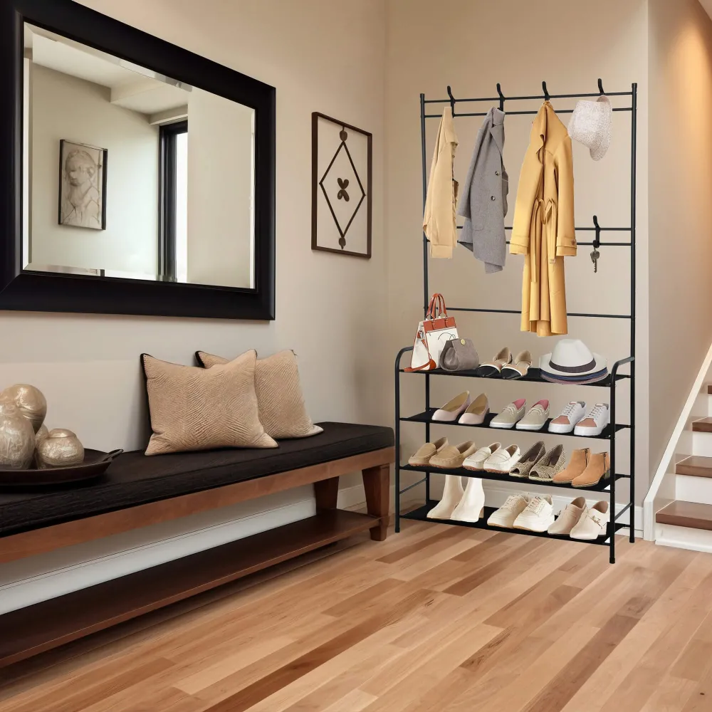SPRINGOS HA7458 je vybavená štyrmi textilnými policami , ktoré sú vhodné na uloženie topánok, tašiek, úložných boxov či ďalších doplnkov. Osem pohyblivých háčikov slúži na zavesenie kabátov, búnd, kabeliek alebo kľúčov, čím prispievajú k prehľadnému usporiadaniu vecí. Všetko je ľahko dostupné a pritom úhľadne uložené.