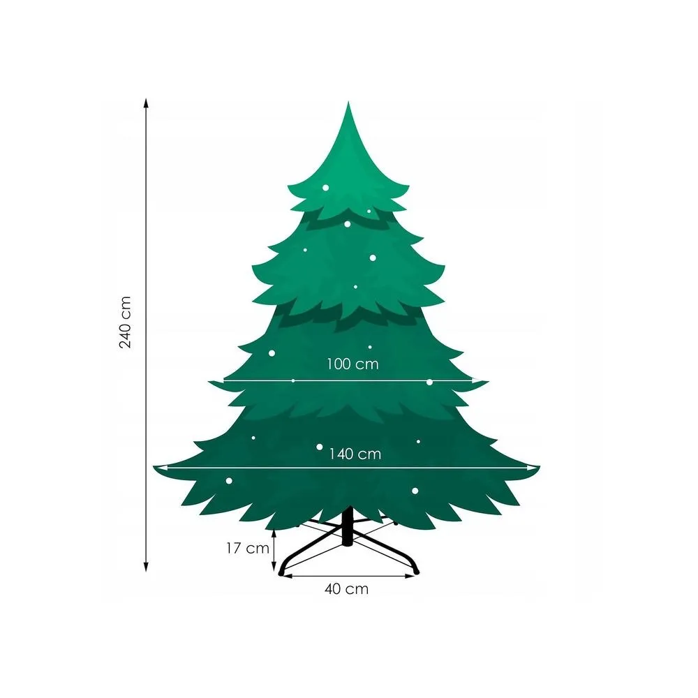 Prémiový vianočný stromček s dokonale autentickým vzhľadom alpského smreka. Vysoko kvalitný a realistický 100% PE materiál, extra husté a nerovnomerné vetvenie bez medzier, detailné spracovanie vetvičiek, elegantný kovový stojan, prírodná zelená farba. Výška stromčeka 240 cm, spodná šírka 140 cm, priemer stojana 55 cm.