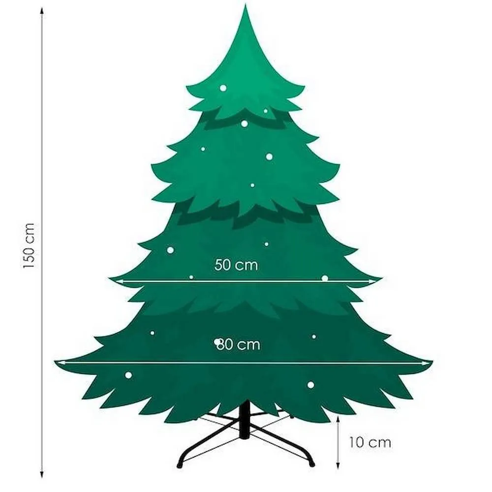 Umelý vianočný stromček s realistickým vzhľadom prírodnej jedle. Rovnomerne rozložené ihličie, detailne spracované vetvičky, husté vetvenie bez medzier, prírodná zelená farba. Výška stromčeka 150 cm, spodná šírka 80 cm, priemer stojana 55 cm.