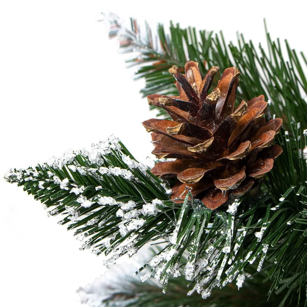 Vianočný stromček Borovica diamantová s výškou 220 cm zaujme svojim hustým vetvením a elegantným vzhľadom. Vetvičky majú srienisté konce s efektom jemnej námrazy. Detail, ktorý prinesie do vášho domova kúzlo zimnej prírody. Stromček je navyše prekrásne zdobený šiškami , ktoré pridávajú na jeho prirodzenosti a pôsobia štýlovo aj bez ďalších ozdôb.