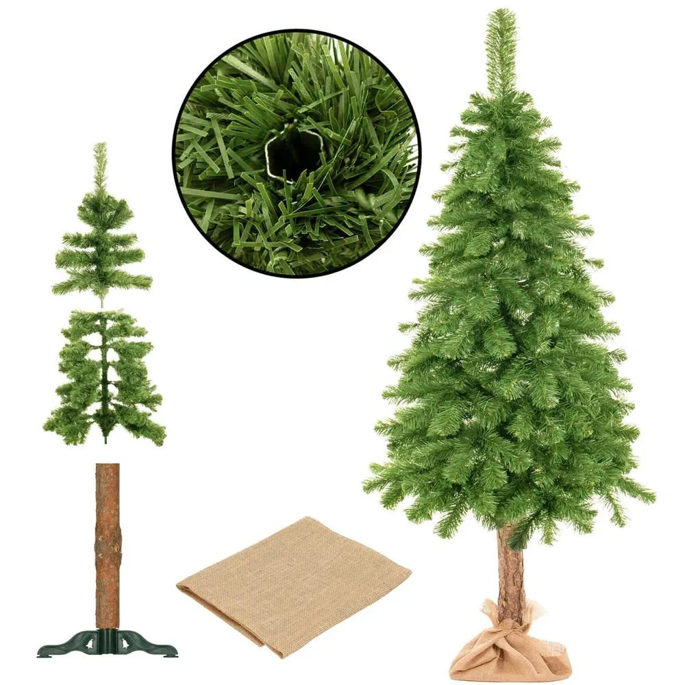 Umelý vianočný stromček s prírodným kmeňom a stojanom obaleným pravou jutou. Prekrásne zdobené pravými šiškami, prírodná vôňa dreva, rovnomerne rozložené ihličie, detailne spracované vetvičky, husté vetvenie bez medzier, prírodná zelená farba. Výška stromčeka 160 cm, spodná šírka 74 cm, priemer stojana 45 cm.