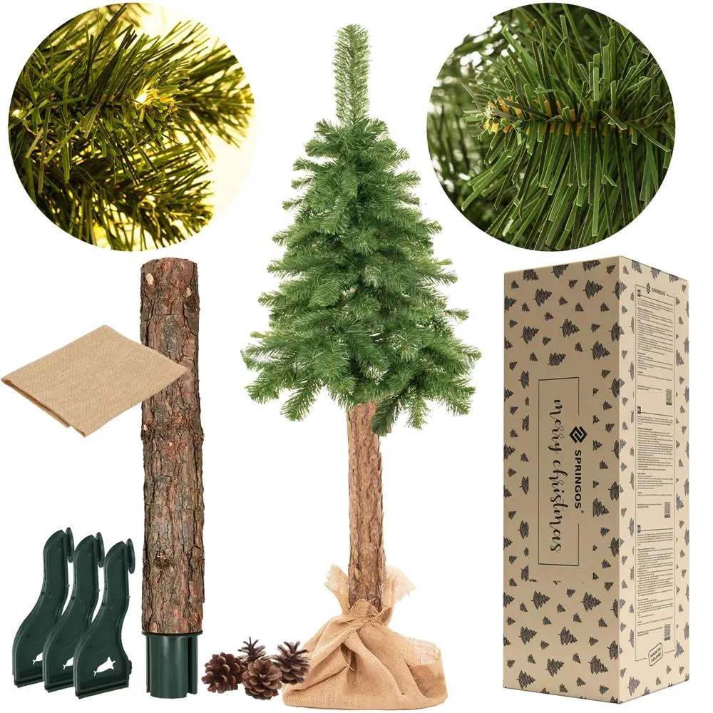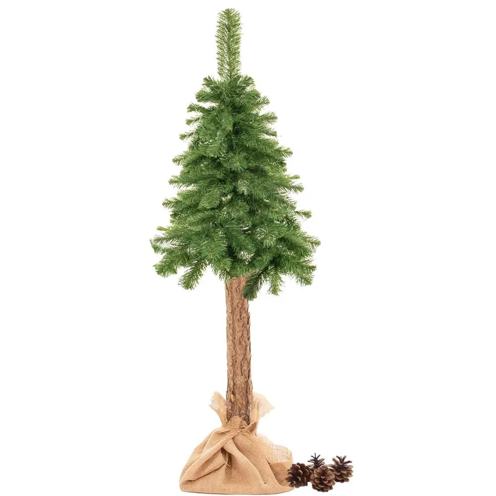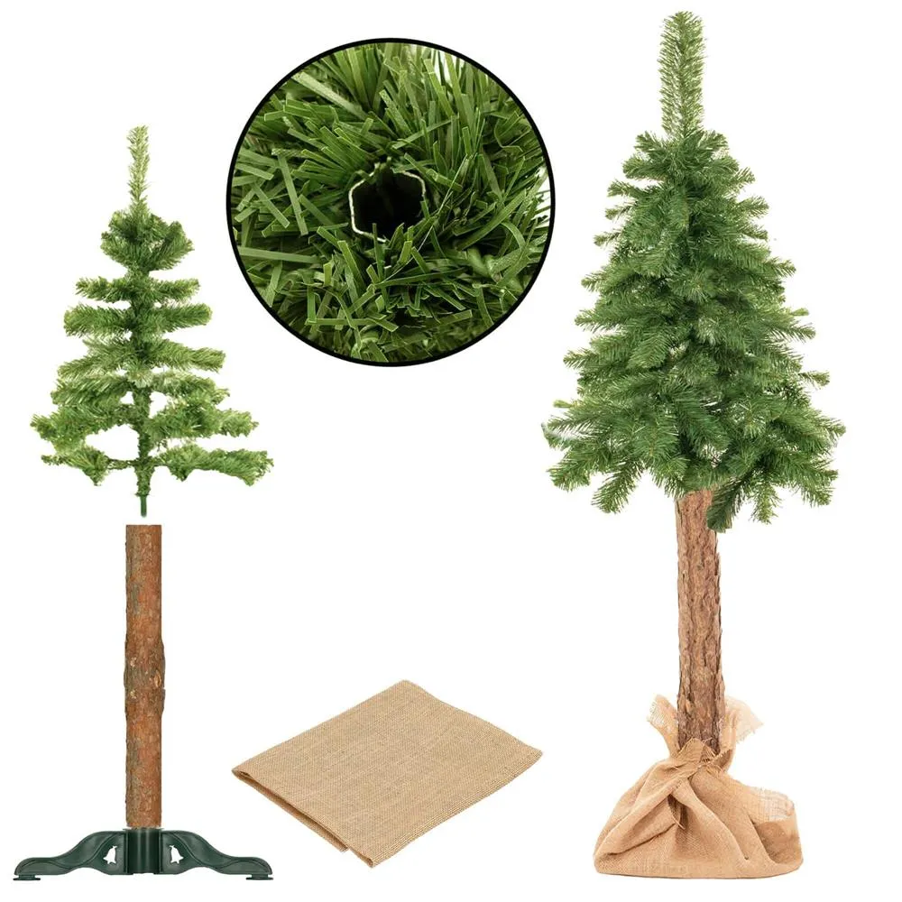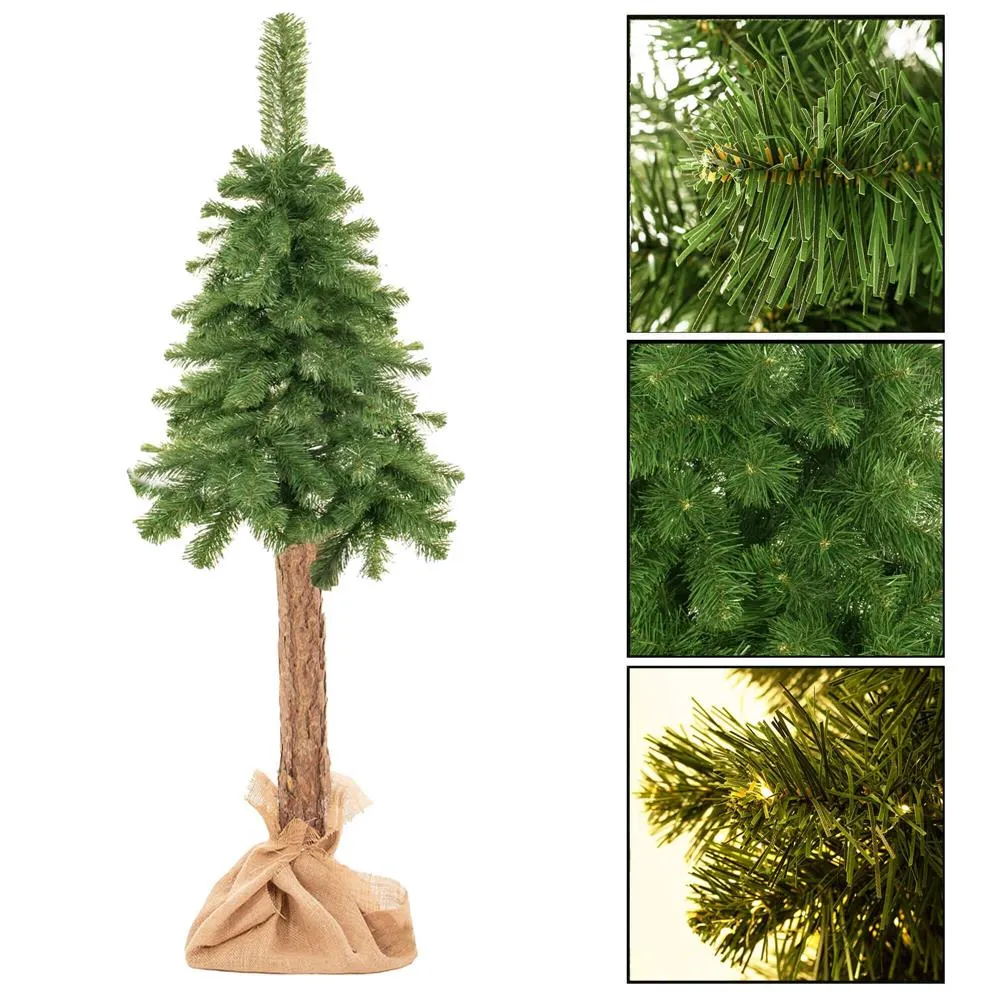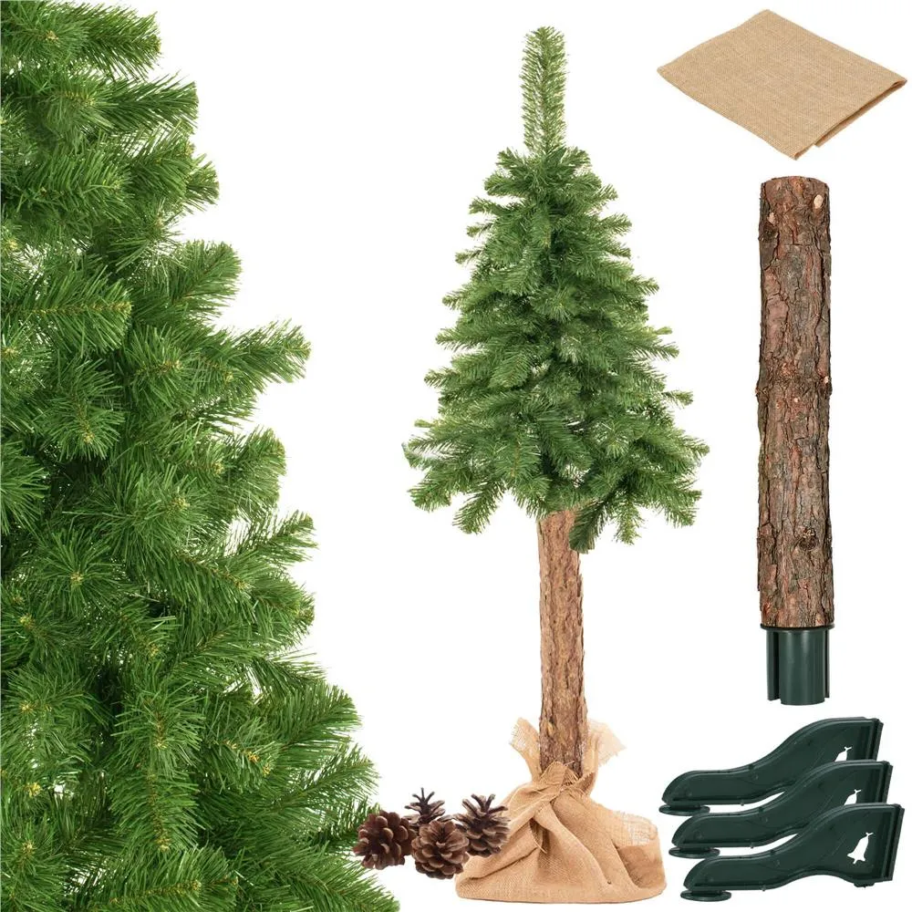 Umelý vianočný stromček s prírodným kmeňom a stojanom obaleným pravou jutou. Prekrásne zdobené pravými šiškami, prírodná vôňa dreva, rovnomerne rozložené ihličie, detailne spracované vetvičky, husté vetvenie bez medzier, prírodná zelená farba. Výška stromčeka 140 cm, spodná šírka 47 cm, priemer stojana 45 cm.
