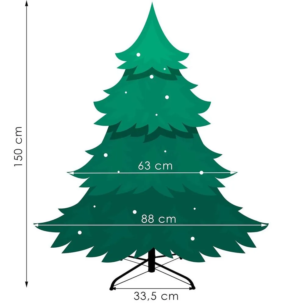 Prémiový vianočný stromček s realistickým vzhľadom prírodného smreka Vysoko kvalitné PE ihličie dokonale imituje živý strom a štruktúra vetvičiek spolu so špeciálnou kombináciou hnedej a zelenej fólie verne napodobňujú pravé ihličie a vetvy. je opatrený gumovými podložkami schráni podlahu pred poškriabaním. Výška stromčeka 150 cm, spodná šírka 88 cm, priemer stojana 47 cm.
