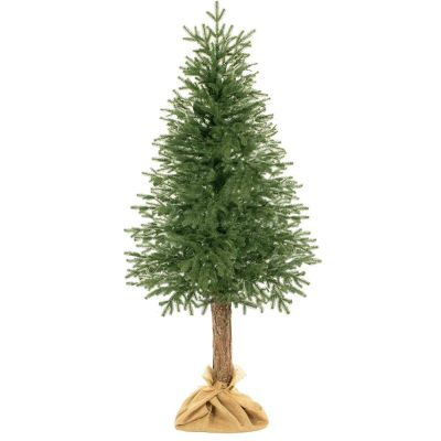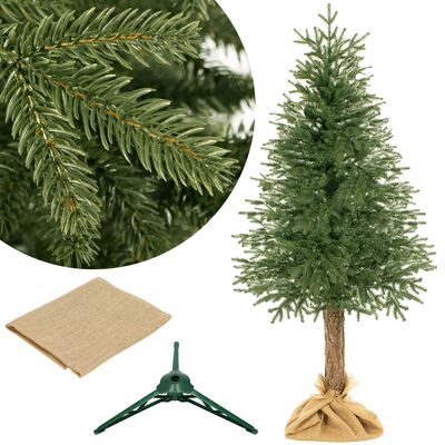 Umelý vianočný stromček s prírodným kmeňom a stojanom obaleným pravou jutou. Kombinácia elegancie a prirodzeného vzhľadu, vysoko kvalitný PE materiál. Prírodná vôňa dreva, rovnomerne rozložené ihličie, detailne spracované vetvičky, husté vetvenie bez medzier, prírodná zelená farba. Výška stromčeka 220 cm, spodná šírka 95 cm, priemer stojana 45 cm.