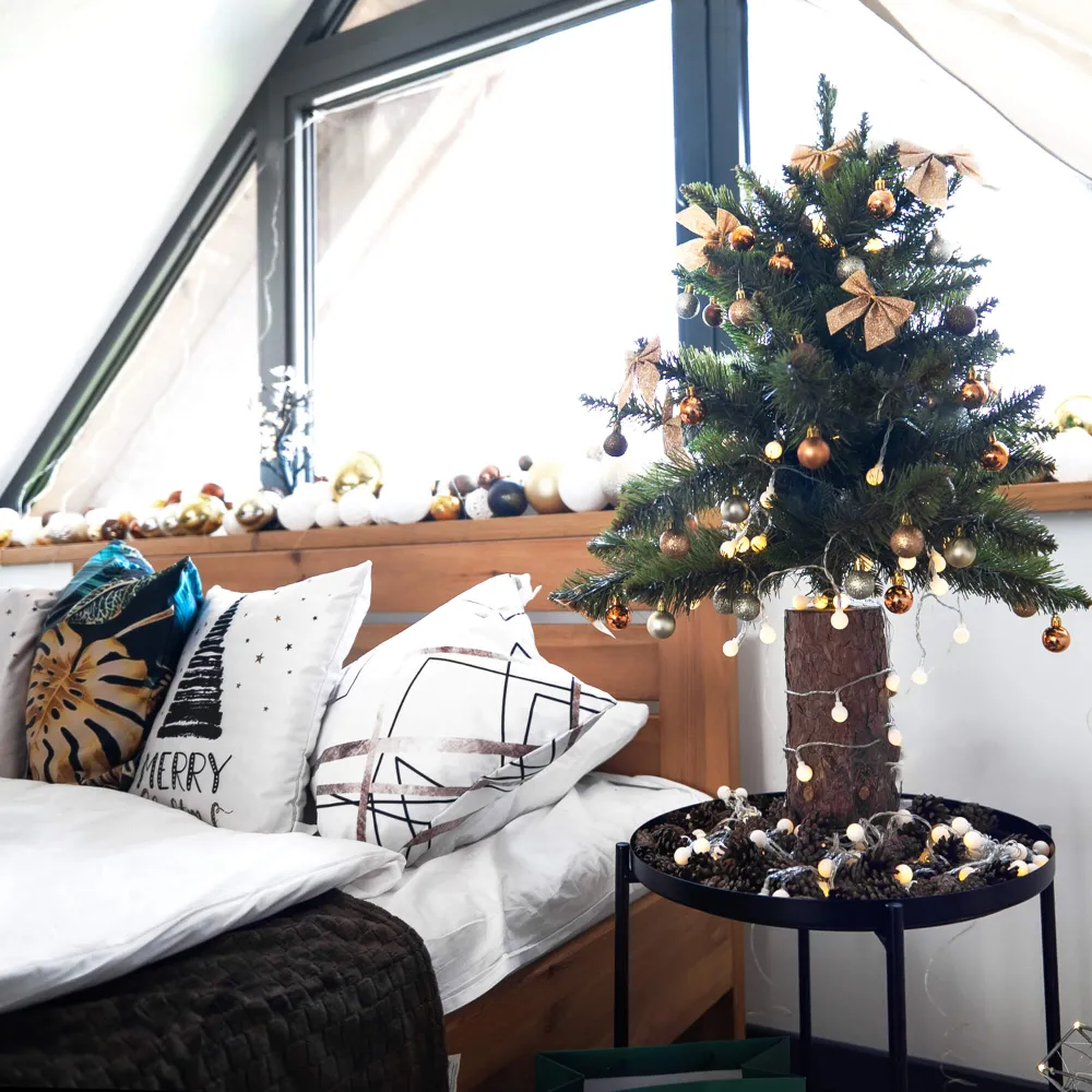 Umelý vianočný stromček s pravým dreveným kmienkom prináša do interiéru prirodzený vzhľad a jemnú vôňu lesa. Vďaka realistickému ihličiu z PVC fólie a vysokej hustote konárov pôsobí ako skutočný. Možnosť modelovania vetiev umožňuje ľahko upraviť tvar stromčeka podľa potreby. Detailné spracovanie, ľahké zostavenie a šetrnosť k životnému prostrediu z neho robia ideálnu voľbu pre menšie priestory aj vianočné dekorácie. Výška 100 cm, spodná šírka 50 cm, priemer kmienka 10 cm.