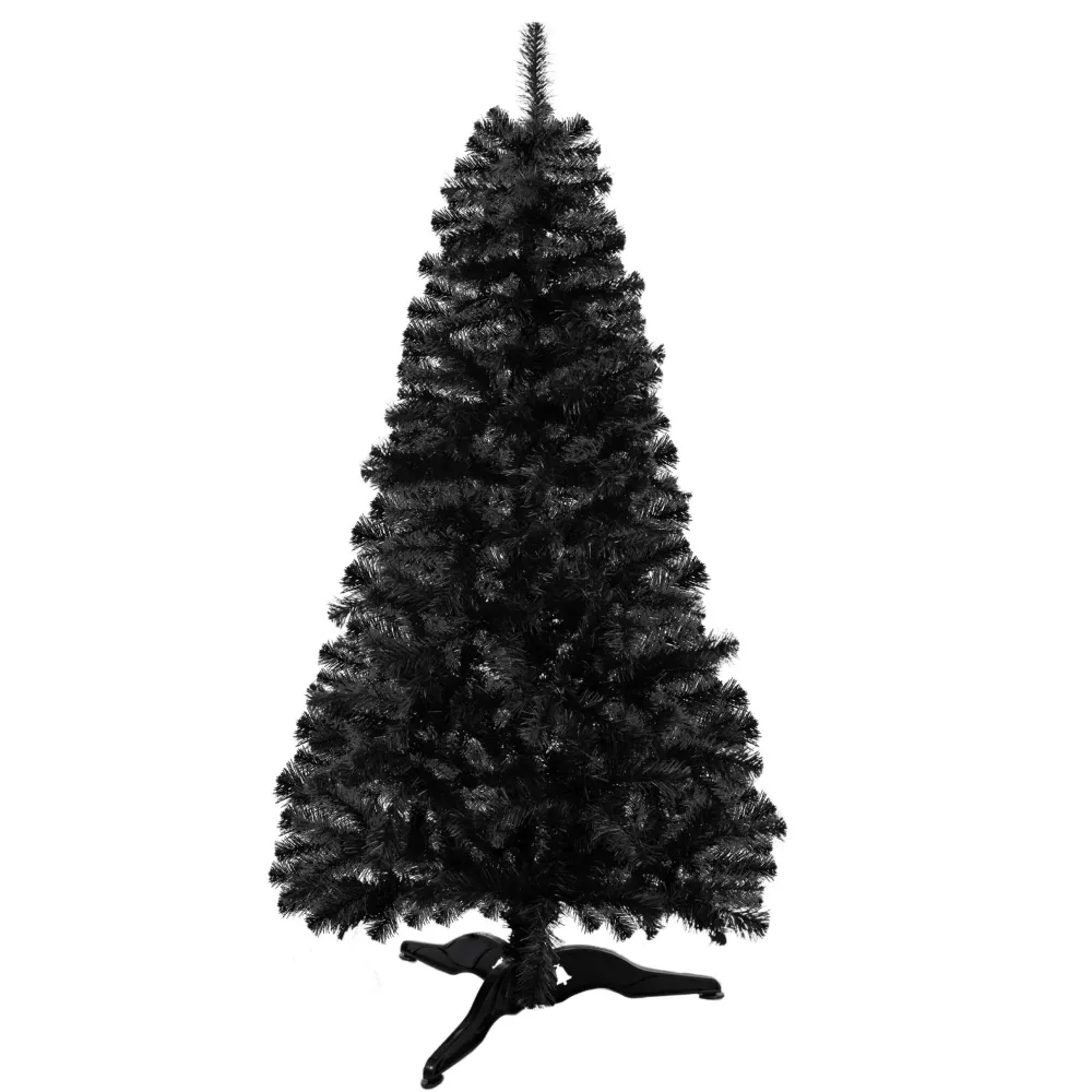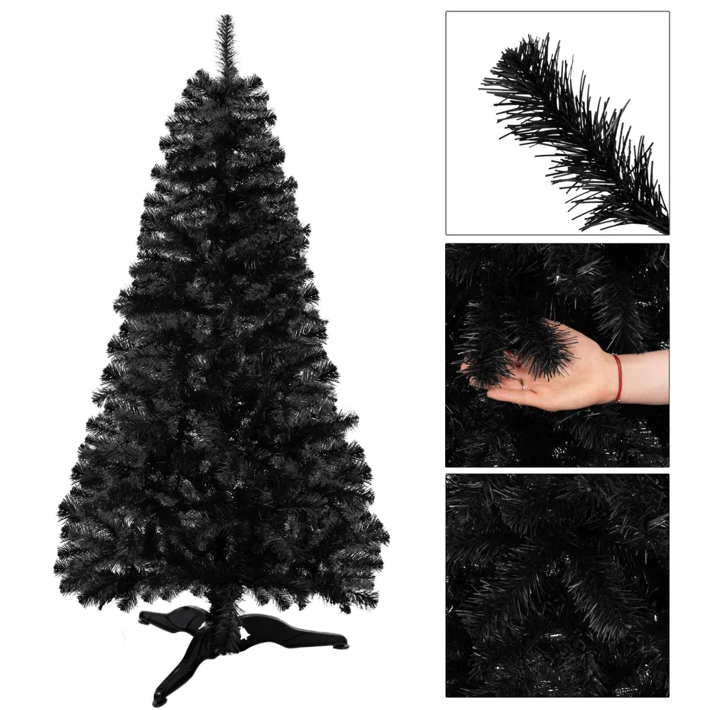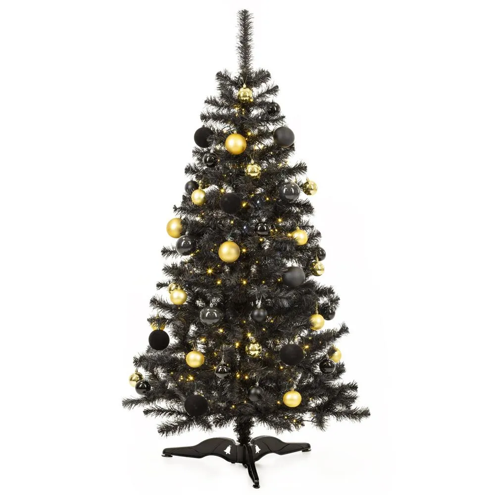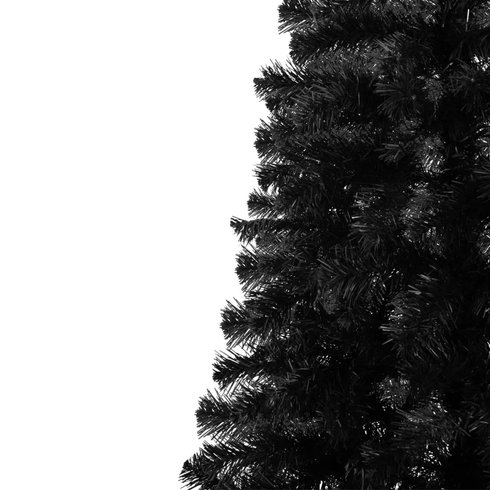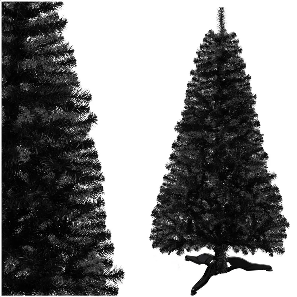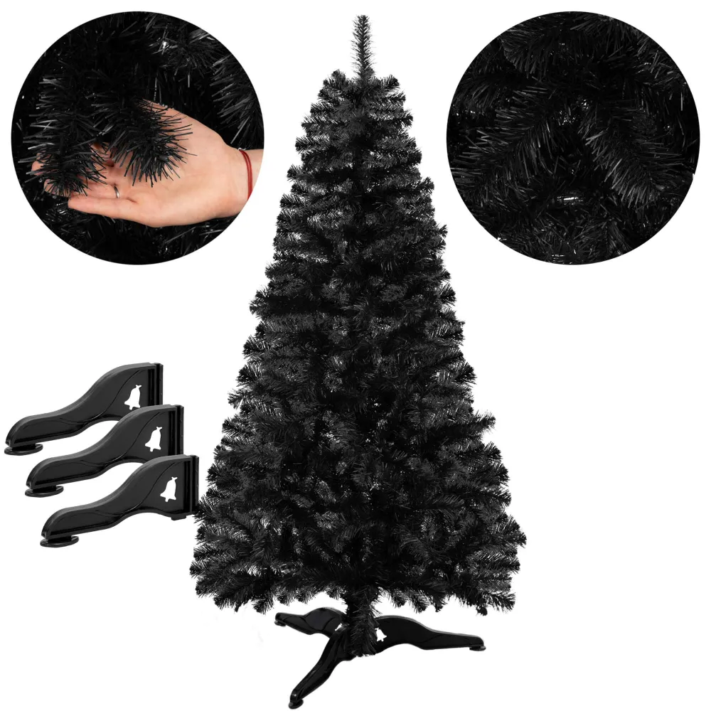 Umelý vianočný stromček v elegantnej čiernej farbe zaujme svojim ultra realistickým vzhľadom a hustými, detailne spracovanými vetvami. Vyrobený z kvalitnej PVC fólie s rovnomerne rozloženým ihličím pôsobí luxusne a originálne. Vďaka možnosti modelovania vetiev ľahko vytvoríte ideálny tvar. Stabilitu zaisťuje robustný trojramenný stojan. Stromček má odolnú konštrukciu, ľahko sa skladá a je šetrný k životnému prostrediu. Výška 180 cm, spodná šírka 90 cm, priemer stojana 65 cm.