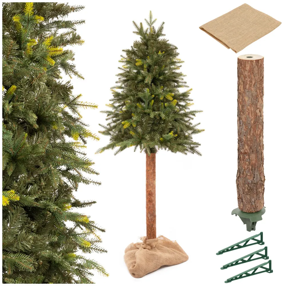 Vianočný stromček Smrek prírodný na kmienku 150 cm vyniká svojim autentickým vzhľadom, ktorý dokonale napodobňuje skutočný lesný strom. Kombinuje prírodný kmienok z pravého dreva s ultra realistickým ihličím z dvojfarebnej PE fólie , čím vytvára harmonické spojenie tradície a moderného dizajnu. Každý detail je premyslený tak, aby stromček pôsobil ako živý a priniesol do vášho domova pravú vianočnú atmosféru doplnenú jemnou vôňou lesa .