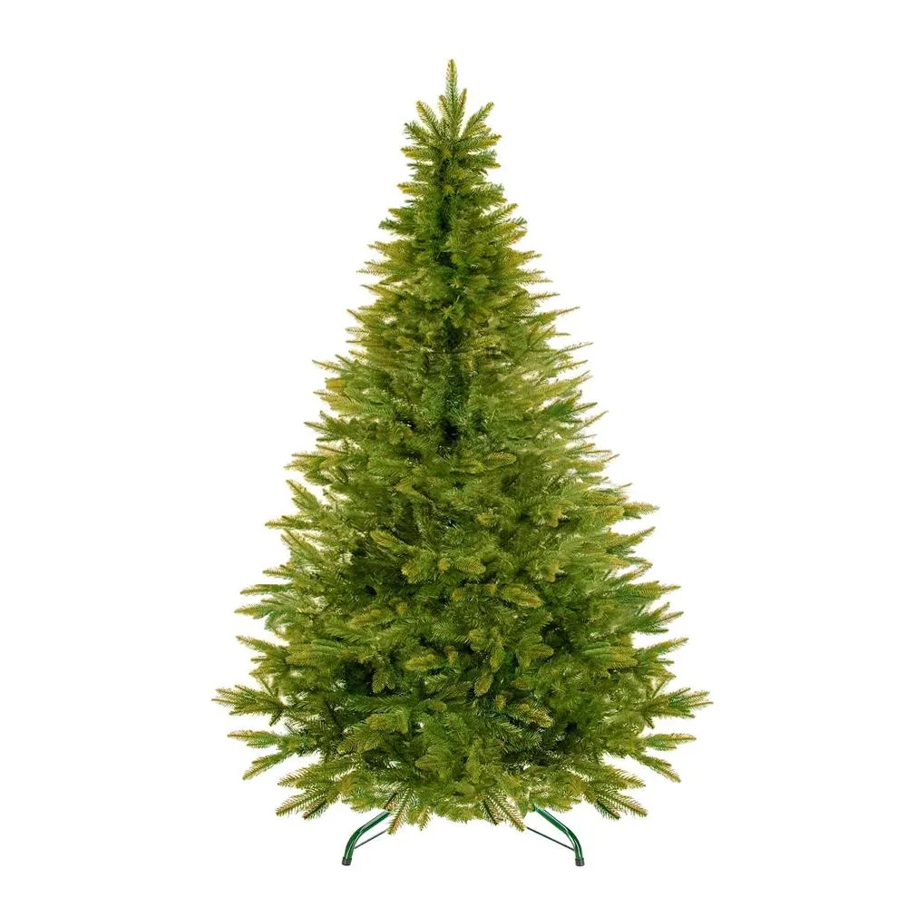 Umelý vianočný stromček s prirodzene zeleným ihličím a jasne zelenými koncami vetvičiek verne napodobňuje mladé výhonky živého smreka. Vďaka ultra realistickému vzhľadu, vysokej hustote konárov a detailnému spracovaniu pôsobí veľmi prirodzene. Dvojfarebné ihličie z PVC fólie zaisťuje dokonalý efekt, vetvy je možné tvarovať podľa potreby. Stabilitu poskytuje 4 ramenný kovový stojan. Stromček je odolný, ľahko sa skladá a je šetrný k prírode. Výška 180 cm, spodná šírka 120 cm, priemer stojana 50 cm.
