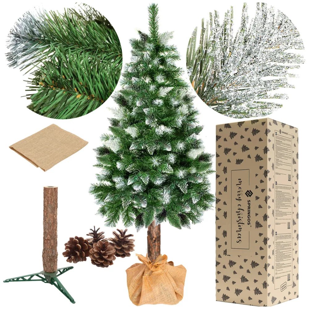 Vianočný stromček Borovica diamantová na kmienku 220 cm očarí svojim prírodným vzhľadom a zimnou atmosférou. Kombinácia prírodného kmienka z pravého dreva a jemne srienistých a namrznutých koncov vetvičiek vytvára dojem stromčeka čerstvo prineseného z lesa. Dekor je navyše doplnený o pravé šišky , ktoré podčiarkujú autentickosť a pôvab prírodnej vianočnej výzdoby. Vďaka ultra realistickému spracovaniu pôsobí stromček na prvý pohľad ako živý.