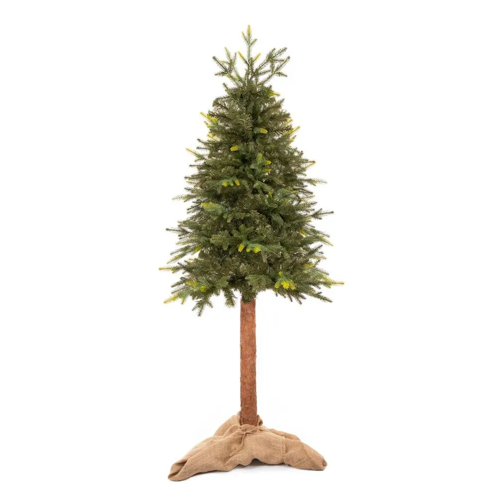 Vianočný stromček Smrek prírodný na kmienku 180 cm vyniká svojim autentickým vzhľadom, ktorý dokonale napodobňuje skutočný lesný strom. Kombinuje prírodný kmienok z pravého dreva s ultra realistickým ihličím z dvojfarebnej PE fólie , čím vytvára harmonické spojenie tradície a moderného dizajnu. Každý detail je premyslený tak, aby stromček pôsobil ako živý a priniesol do vášho domova pravú vianočnú atmosféru doplnenú jemnou vôňou lesa .
