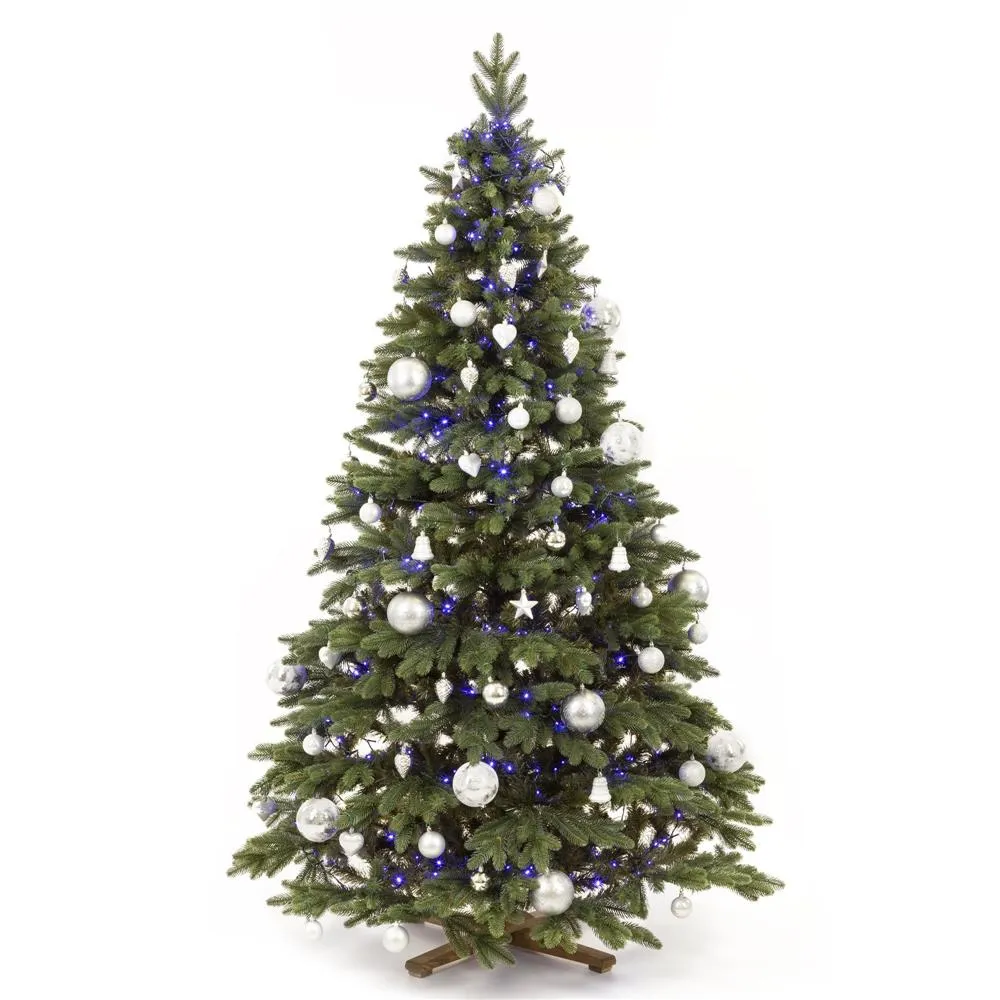 Vianočný stromček Borovica Royal prírodná 210 cm prináša do vášho domova autentickú vianočnú atmosféru s dojmom skutočnej lesnej borovice. Vďaka ultra realistickému vzhľadu a detailnému spracovaniu pôsobí stromček veľmi prirodzene a elegantne. Jeho husté, silné a robustné vetvy vytvárajú plnú a bohatú siluetu, ktorá krásne vynikne aj s jemnejšou výzdobou.