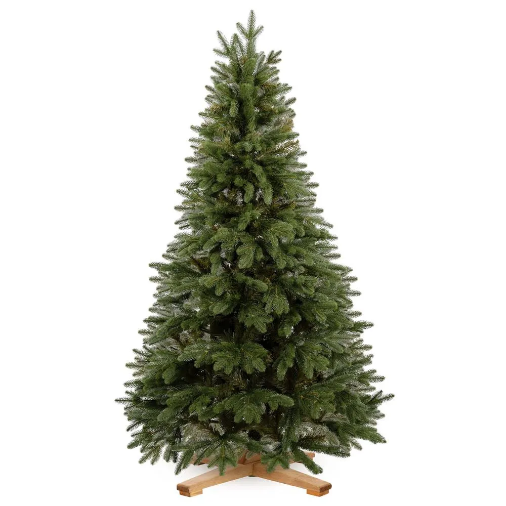 Stromček je vyrobený z kombinácie silnejšieho dvojfarebného PE a PVC ihličia , čo dodáva konárom prirodzenú štruktúru aj farebnú hĺbku. Vďaka možnosti modelovania vetiev môžete ľahko doladiť tvar stromu presne podľa svojich predstáv – od dokonale pravidelného po prirodzene rozvoľnený. Kvalitný zosilnený rám zaisťuje stabilitu a dlhú životnosť, zatiaľ čo masívny drevený stojan podčiarkuje prírodný vzhľad a dodáva stromu luxusný charakter.
