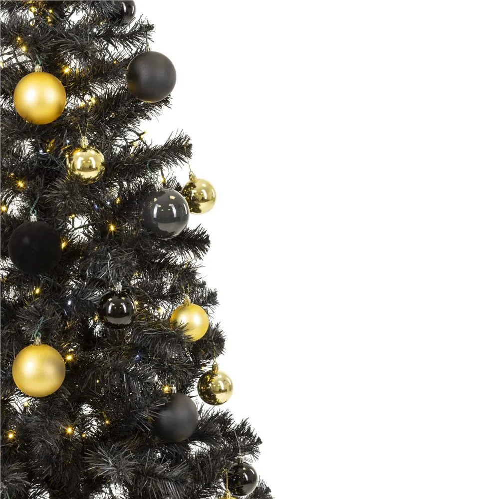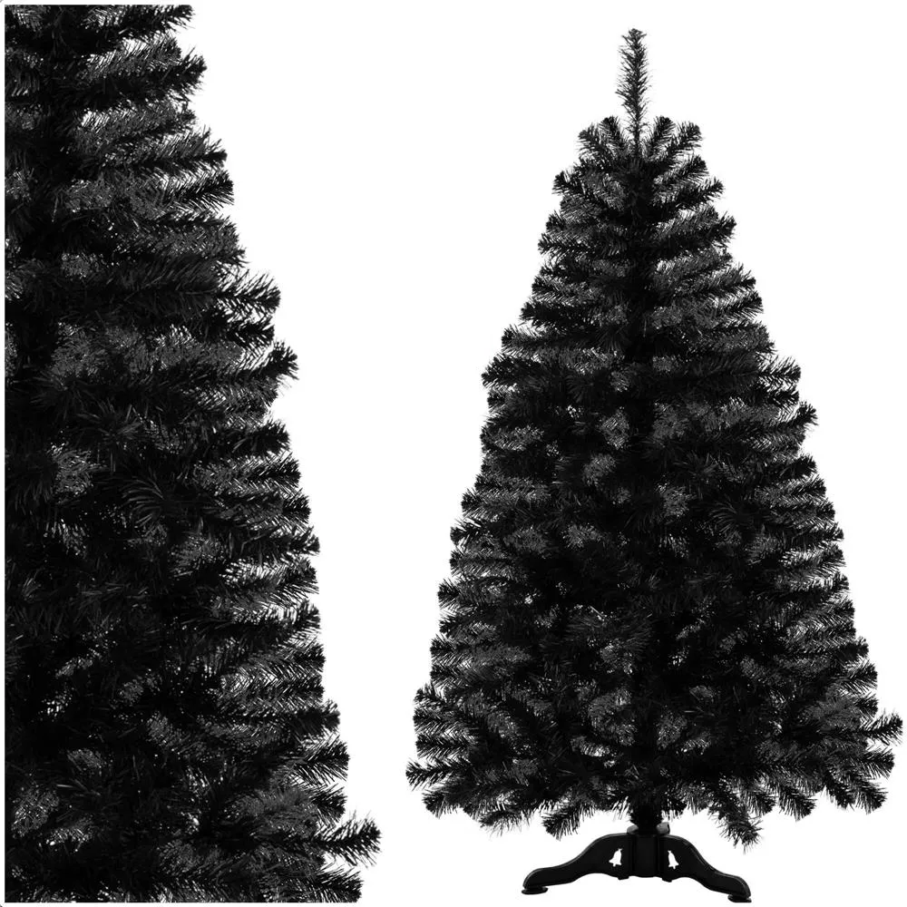 Umelý vianočný stromček v elegantnej čiernej farbe zaujme svojim ultra realistickým vzhľadom a hustými, detailne spracovanými vetvami. Vyrobený z kvalitnej PVC fólie s rovnomerne rozloženým ihličím pôsobí luxusne a originálne. Vďaka možnosti modelovania vetiev ľahko vytvoríte ideálny tvar. Stabilitu zaisťuje robustný trojramenný stojan. Stromček má odolnú konštrukciu, ľahko sa skladá a je šetrný k životnému prostrediu. Výška 150 cm, spodná šírka 85 cm, priemer stojana 40 cm.