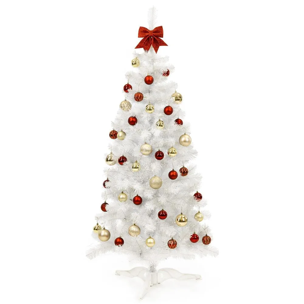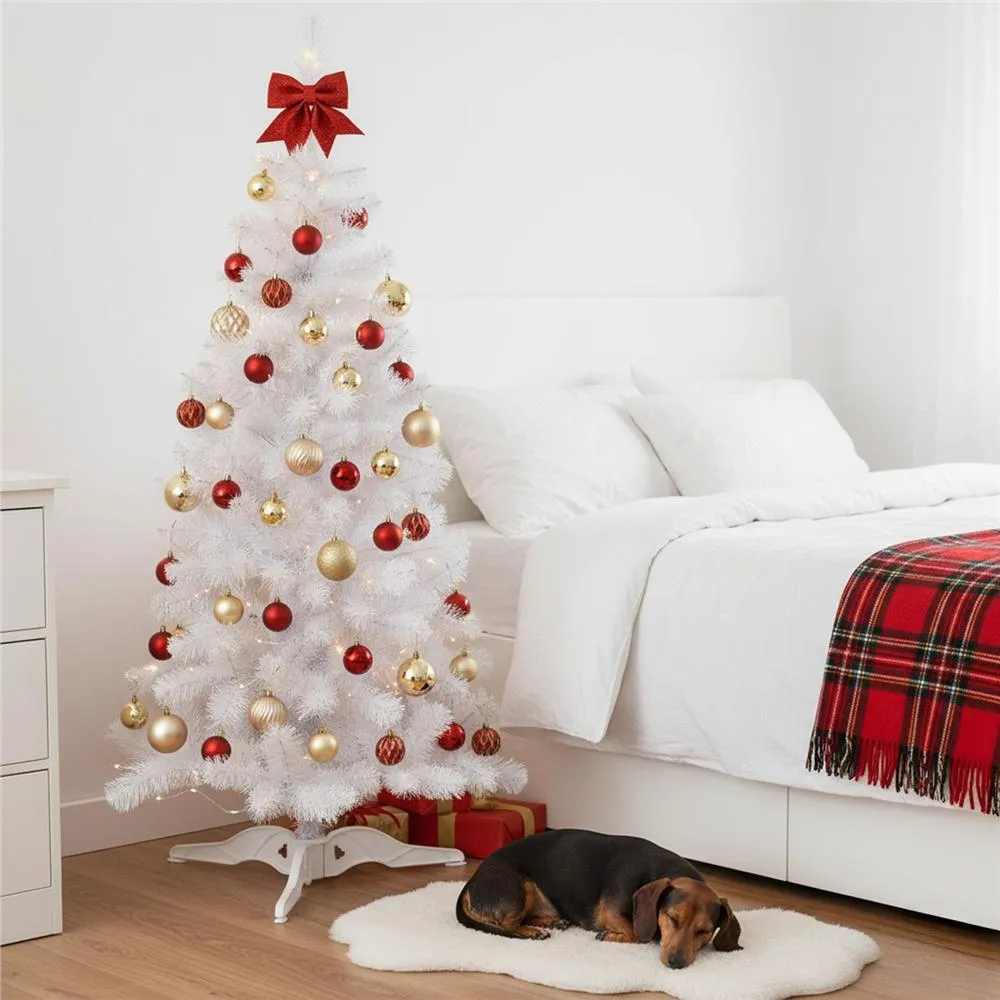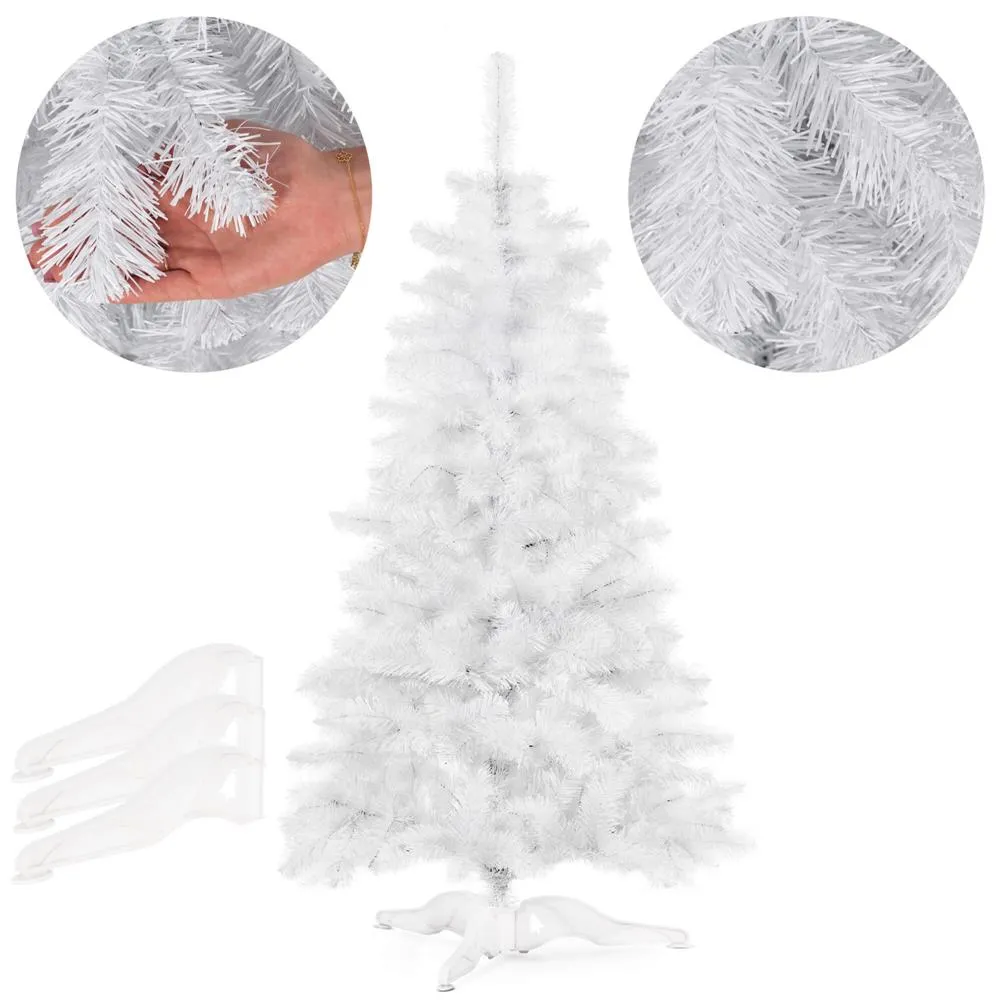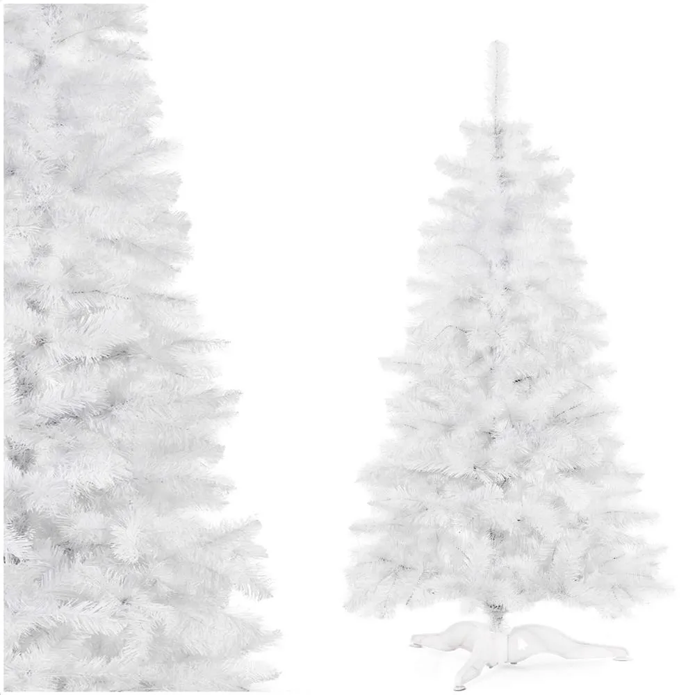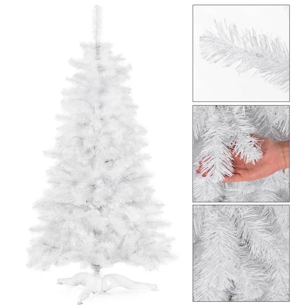 Umelý vianočný stromček v čisto bielej farbe prinesie do interiéru kúzlo zimnej rozprávky. Vďaka ultra realistickému vzhľadu a vysokej hustote konárov pôsobí bohato a slávnostne. Ihličie z bielej PVC fólie je rovnomerne rozložené a umožňuje modelovanie vetiev pre ideálny tvar. Stabilitu zaisťuje trojramenný stojan, stromček má odolnú konštrukciu, ľahko sa skladá a je šetrný k životnému prostrediu. Výška 180 cm, spodná šírka 95 cm, priemer stojana 65 cm.