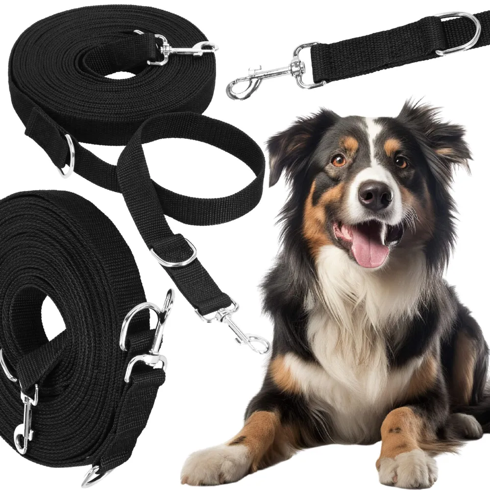 Praktické výcvikové vodítko je vyrobené z kvalitného nylonu, ktorý je odolný voči nečistotám. Dĺžka 10 metrov poskytuje dostatok priestoru na bezpečný pohyb vášho psa. Otočná karabína 360° na oboch stranách zabraňuje zamotaniu a uľahčuje manipuláciu. Dva kovové D-krúžky umožňujú vytvorenie rukoväte pomocou slučky dlhej 30 cm a poskytujú možnosť pripojenia ďalšieho vodidla alebo príslušenstva. Stopovacie vodítko je ideálne pre kontrolované venčenie, športové aktivity aj každodenné prechádzky.