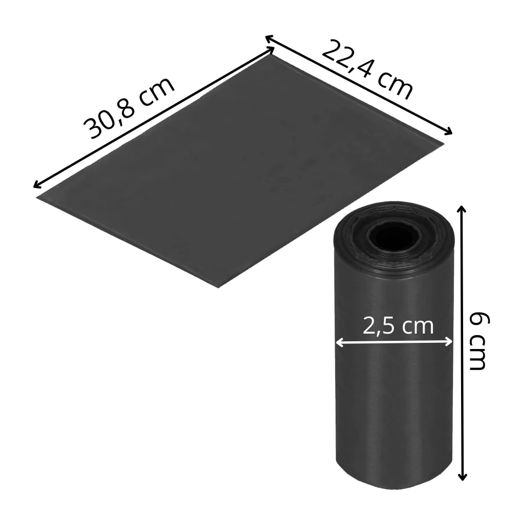 Každá rolka má kompaktnú veľkosť , takže sa ľahko zmestí do vrecka, kabelky alebo zásobníka na vrecká. Sada obsahuje 360 sáčkov , rozdelených do 20 roliek čiernej farby , čo spríjemní každodenné venčenie a umožní ľahkú organizáciu.