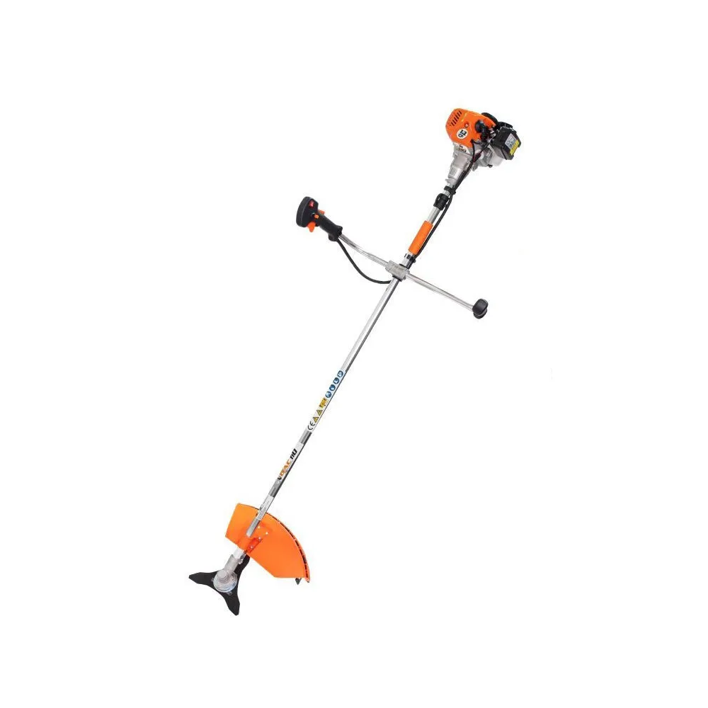 Benzínový krovinorez s elektronickým systémom zapaľovania, manuálnym štartom. Vrátane dvojitého balančného postroja, vyžínacej cievky, 3-zubého žacieho noža a 40-zubého žacieho noža.