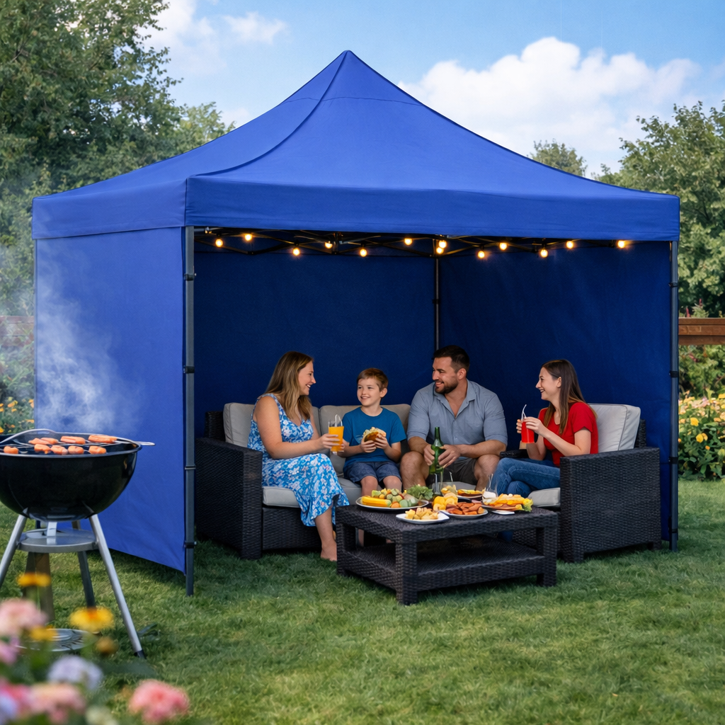 Párty stan na vytvorenie tieňa a ochrany pri vonkajších aktivitách. Slúži na pohodlné posedenie na záhrade, terase, pri kempovaní alebo rodinných akciách. Poskytuje úkryt pred slnkom aj vetrom. Praktické riešenie pre vonkajšiu relaxáciu.