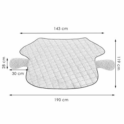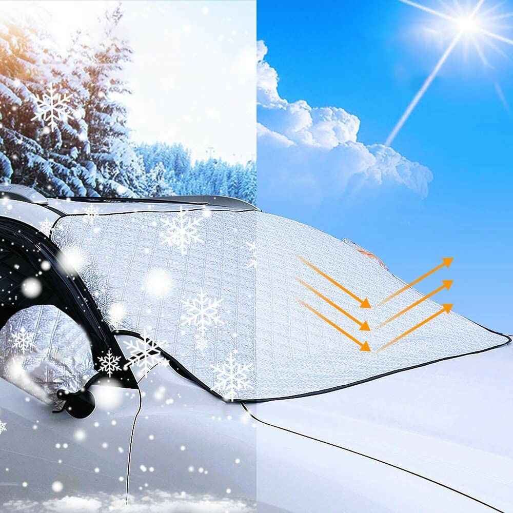 Celoročná ochrana predného skla automobilu. Obojstranné prevedenie, do každého počasia. Rýchla a jednoduchá inštalácia. Odolný 4-vrstvový polyester, dlhá životnosť. Univerzálna veľkosť, 2 vrecká na zrkadlá. Rozmery 143x119 cm (šxv).