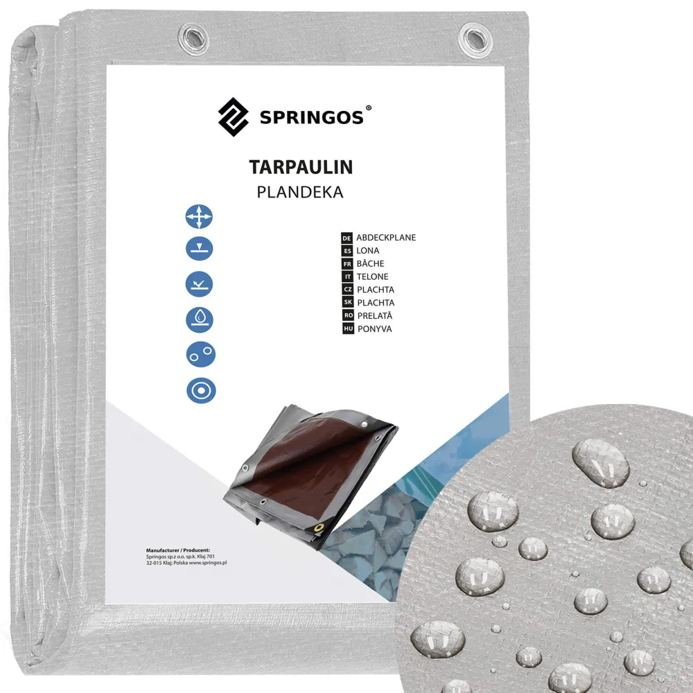 Krycia plachta s okami 5x4 m, 130g PE SPRINGOS GA2184 sivá