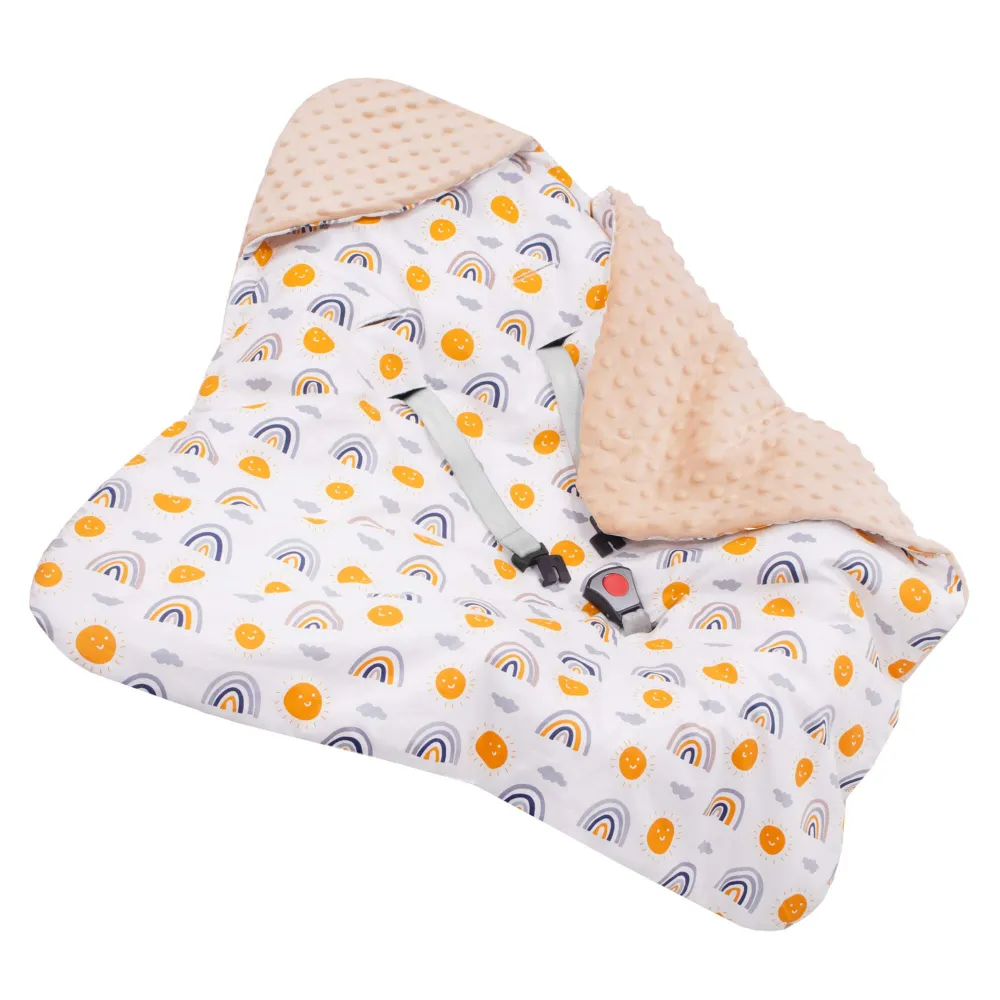 Zavinovačka do autosedačky obojstranná 77x77 cm SPRINGOS SUN béžová je ideálnou voľbou pre rodičov, ktorí chcú svojmu bábätku zaistiť pohodlie a bezpečie pri cestovaní aj bežnom nosení.