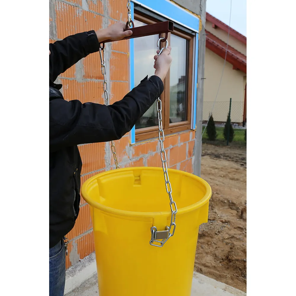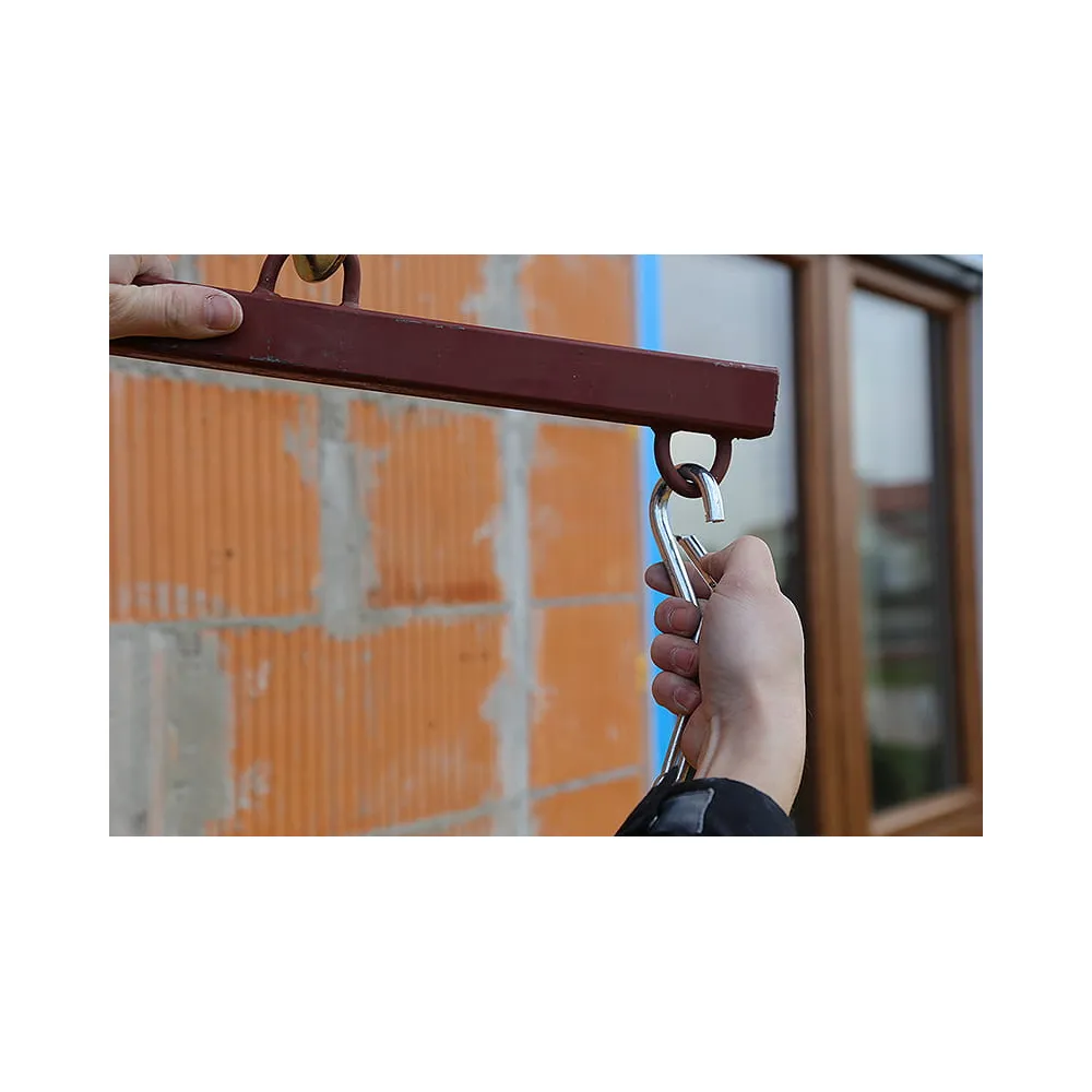Nosná kovová konštrukcia na uchytenie násypky stavebného zhodu. Nastaviteľná hĺbka uchytenia pre steny o sile 20 až 80 cm. Možnosť uchytenia na lešenie. Oká na zavesenie lanového navijaka alebo kladky. Pevné, stabilné a bezpečné uchytenie zhodu. Robustná kovová konštrukcia s výstuhami, profil 35x35 mm.