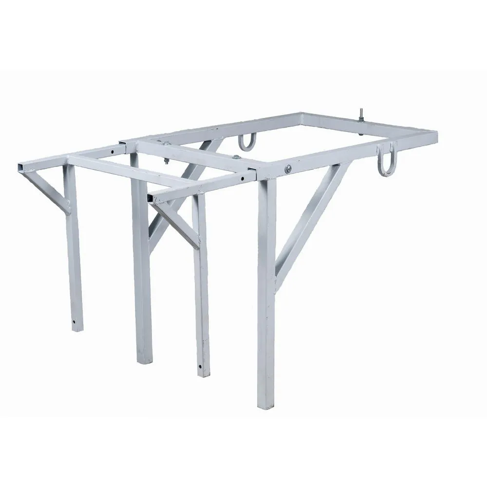 Konštrukcia je vyrobená z oceľových profilov 35x35 mm a ošetrená základovou farbou. Robustné prevedenie s dodatočnými výstuhami spoľahlivo uchytí ľubovoľne dlhý zhoz. Po oboch stranách konštrukcie sú oká na zavesenie lanového navijaka alebo kladky.
