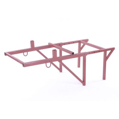 Konštrukcia je vyrobená z oceľových profilov 35x35 mm a ošetrená základovou farbou. Robustné prevedenie s dodatočnými výstuhami spoľahlivo uchytí ľubovoľne dlhý zhoz. Po oboch stranách konštrukcie sú oká na zavesenie lanového navijaka alebo kladky.