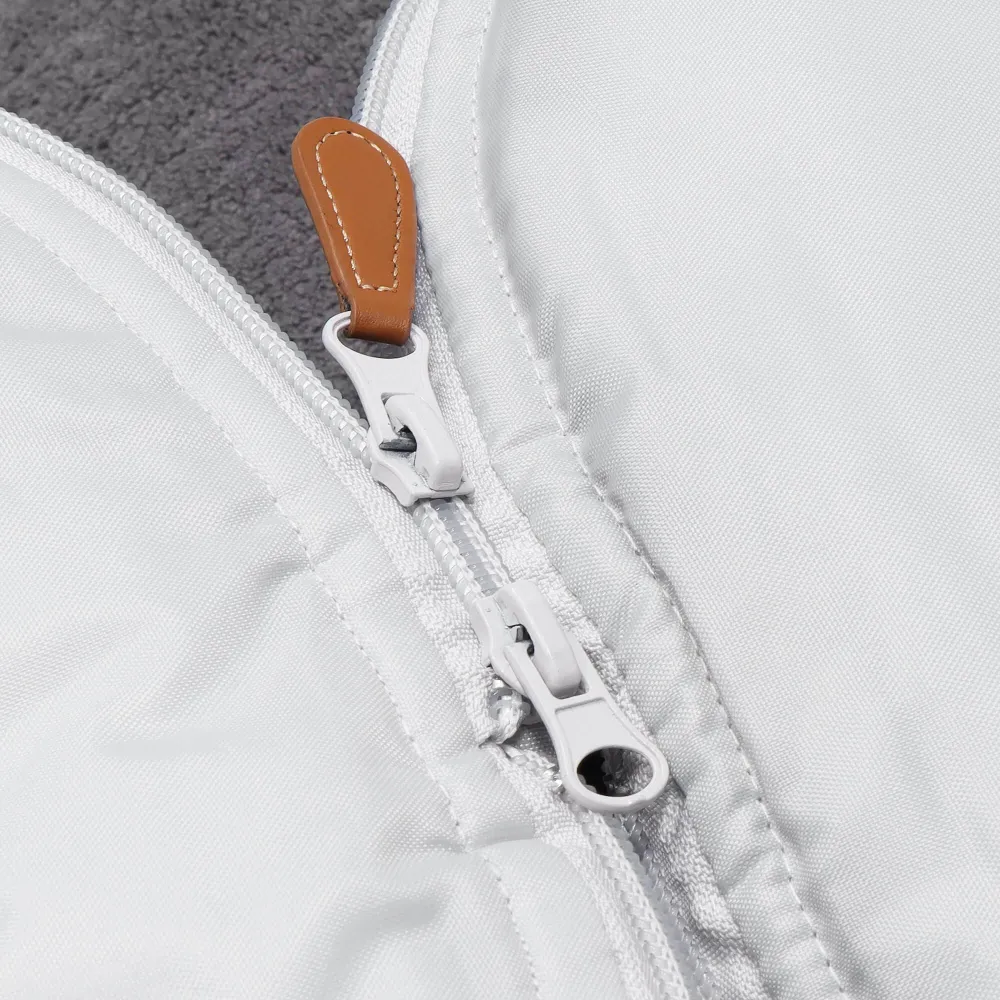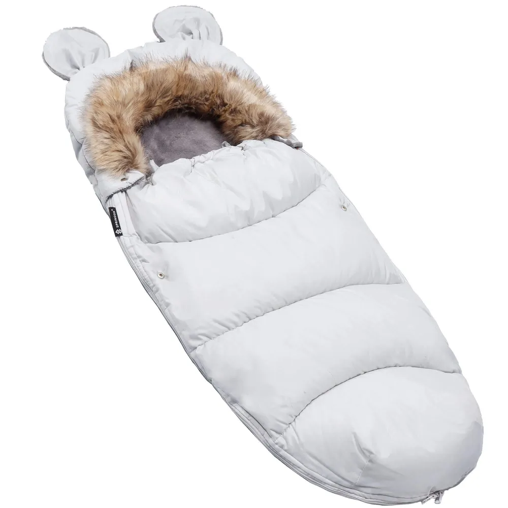 Udržanie tepla vo vnútri spacieho vaku zaisťuje perie, ktoré je pre dieťa bezpečné . Pohodlie zo spacáku dostanete veľmi rýchlym spôsobom - stačí odopnúť prostredný, vonkajší zips. Spací vak je vhodný pre väčšinu kočíkov, korbičky a nosidiel. Vertikálne otvory pre popruhy umožňujú použitie aj na saniach.