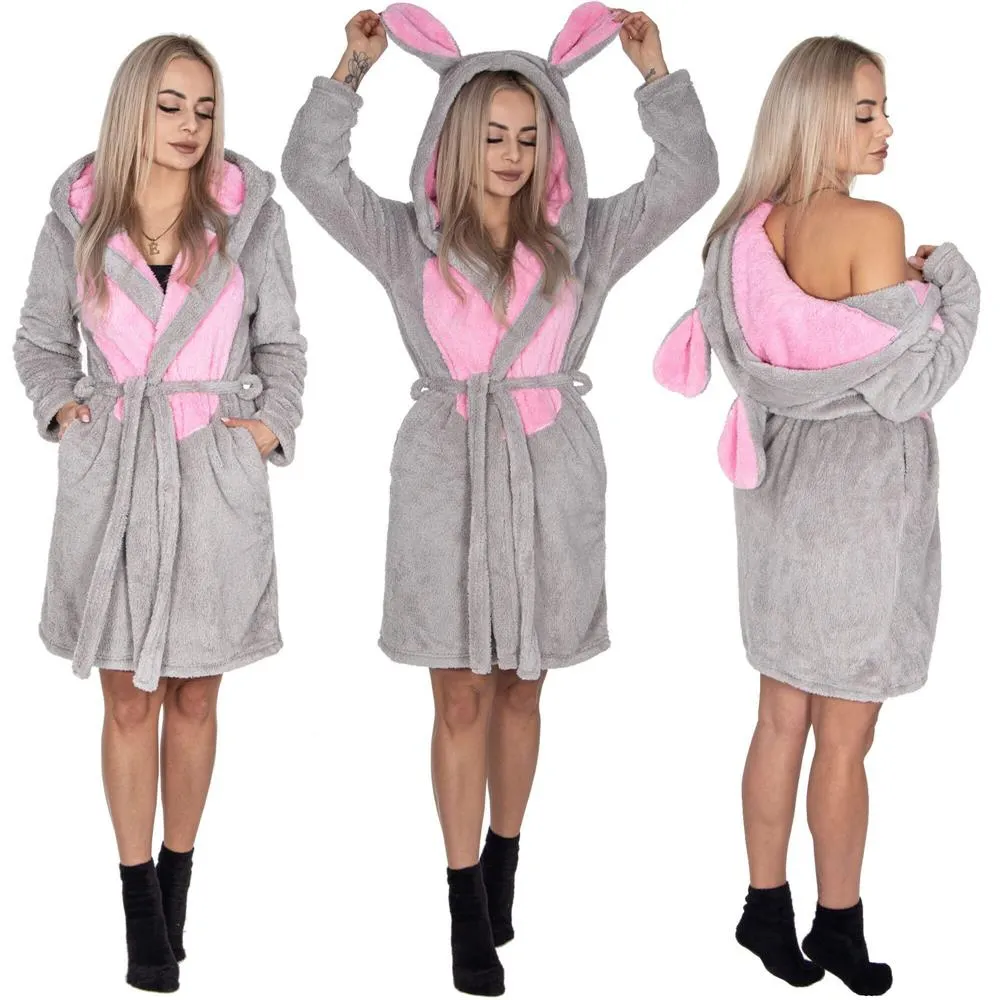 Dámsky župan s ušami S/M SPRINGOS MOUSE šedo-ružový