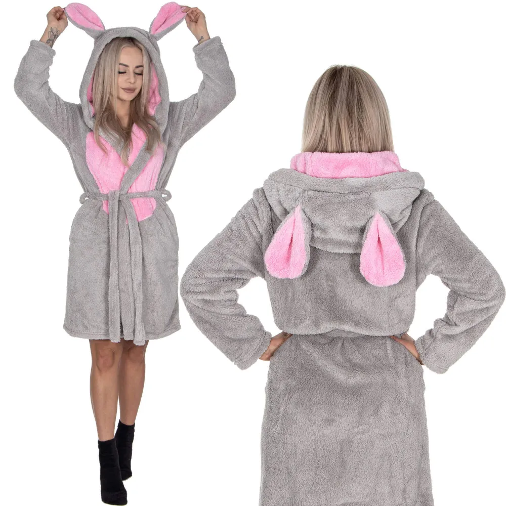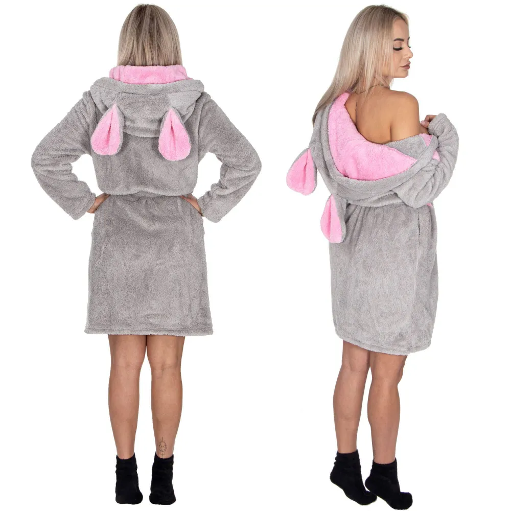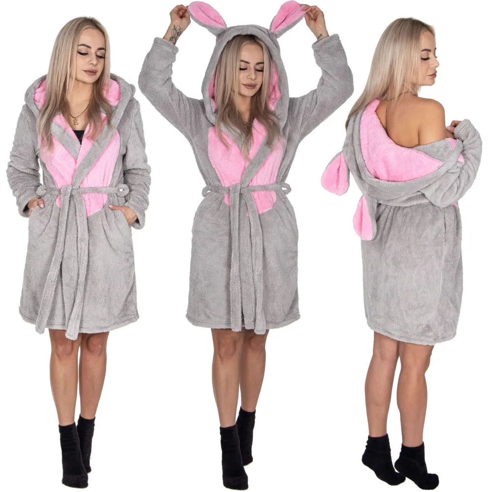 Dámsky župan s ušami L/XL SPRINGOS MOUSE šedo-ružový