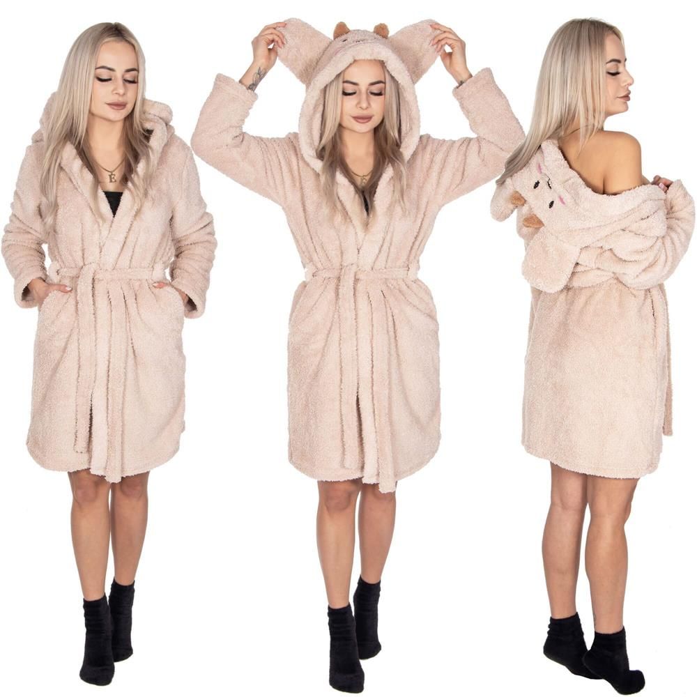 Dámsky župan s ušami S/M SPRINGOS HAMSTER béžový